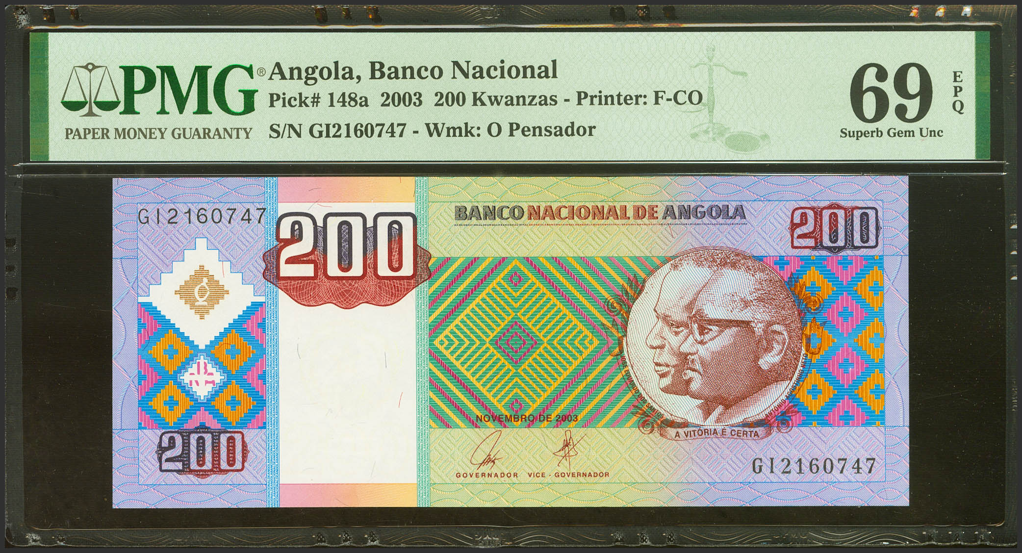 ANGOLA. 200 Kwanzas. 2003. (Pick: 148a). PMG69EPQ.