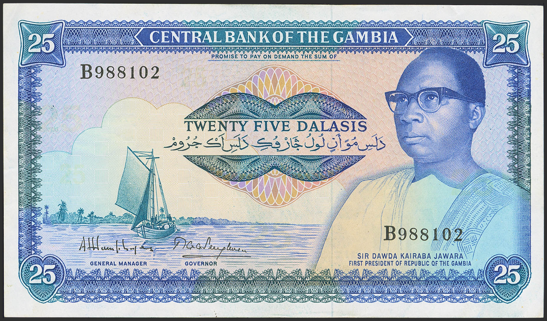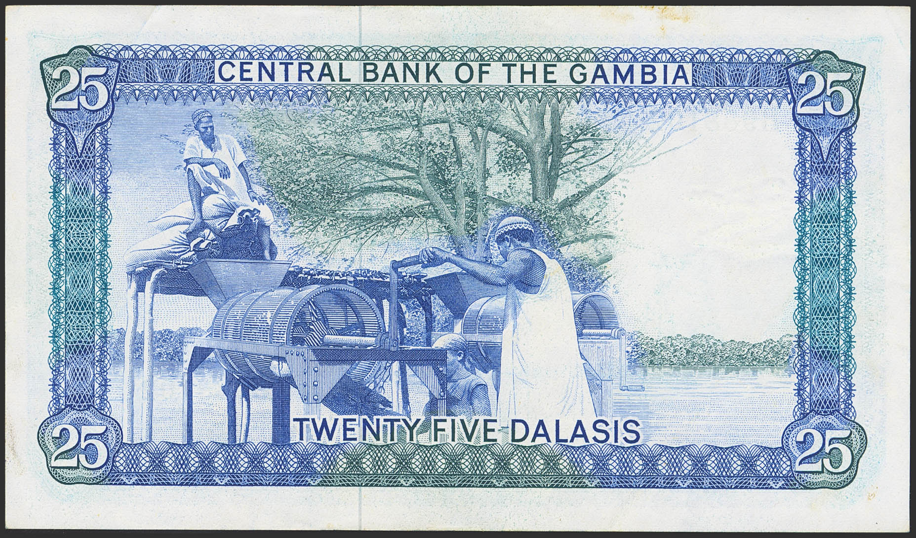 GAMBIA. 25 Dalasis. 1987. (Pick: 11a). About Uncirculated.