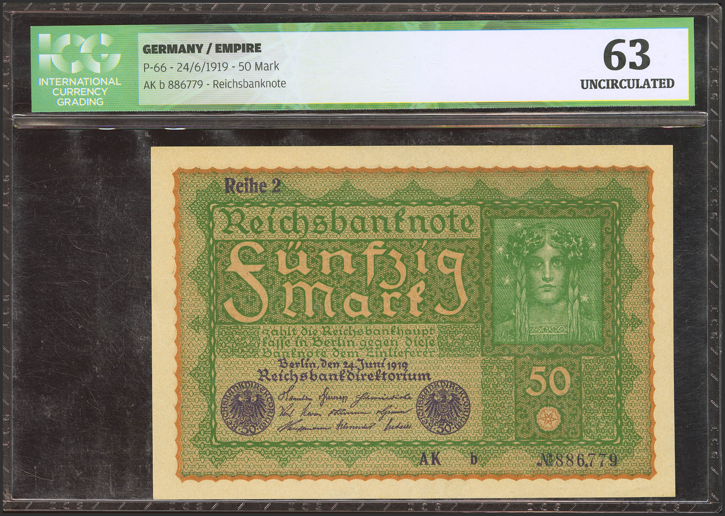 GERMANY. 50 Mark. 24 June 1919. (Pick: 66). ICG63.