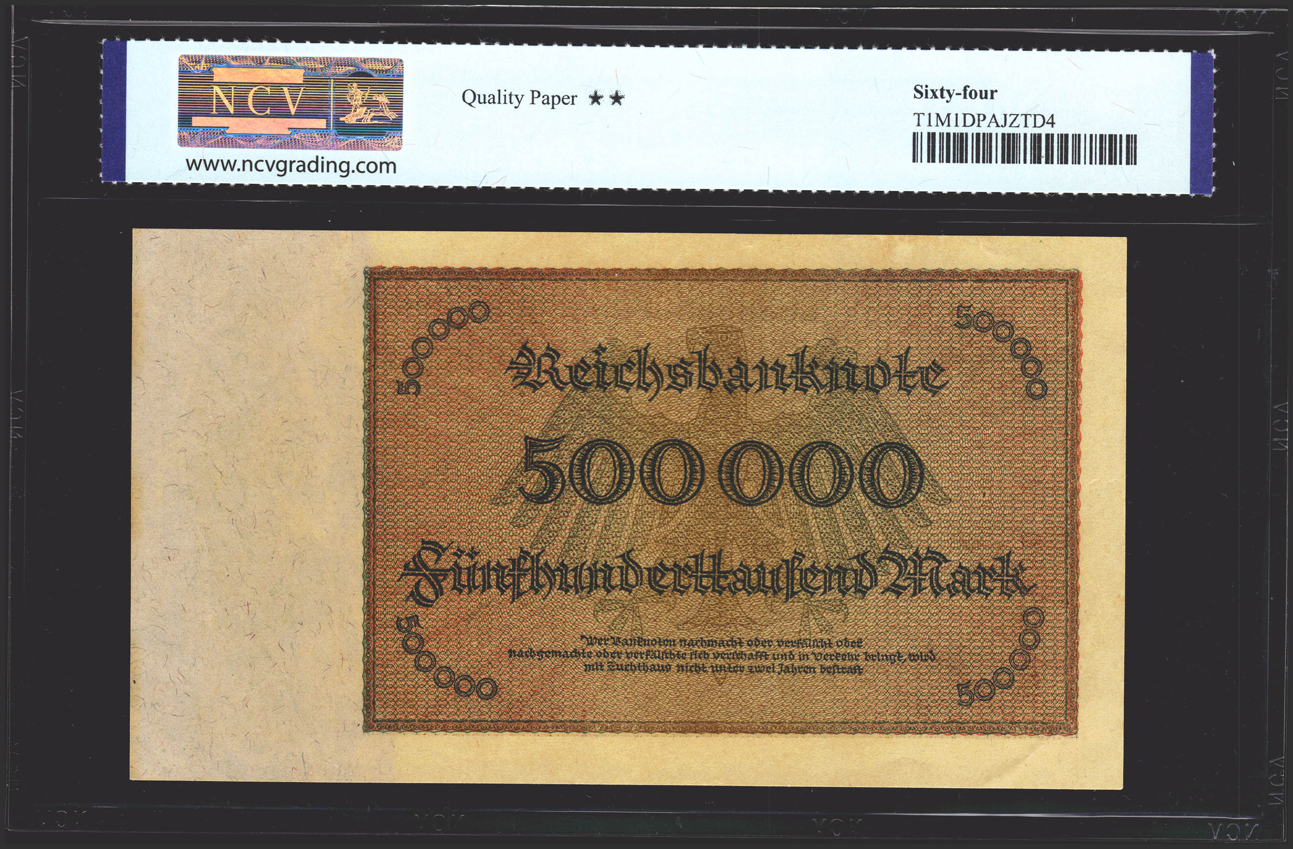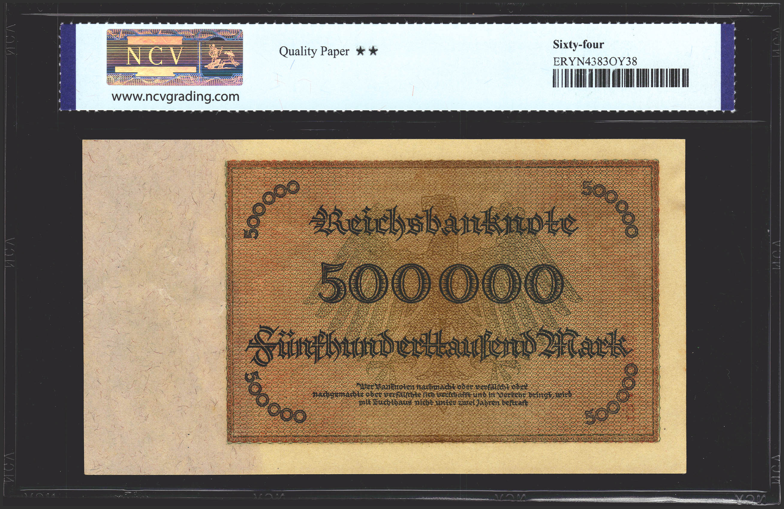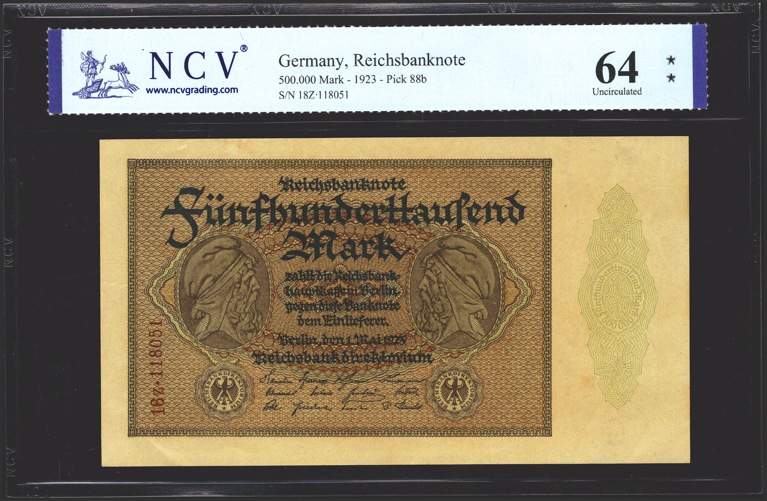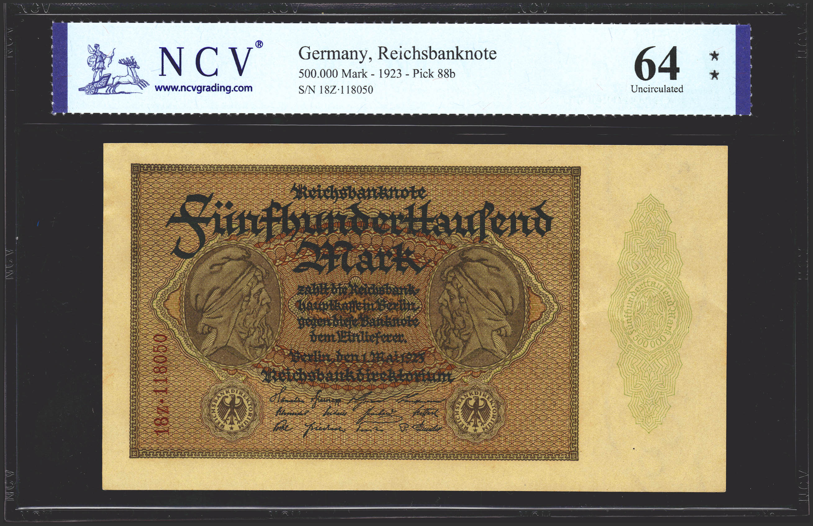 GERMANY. 500000 Mark. Correlative pair. 1 May 1923. Serie 18Z. (Pick 88b). Uncirculated. Encapsulated NCV64, both.