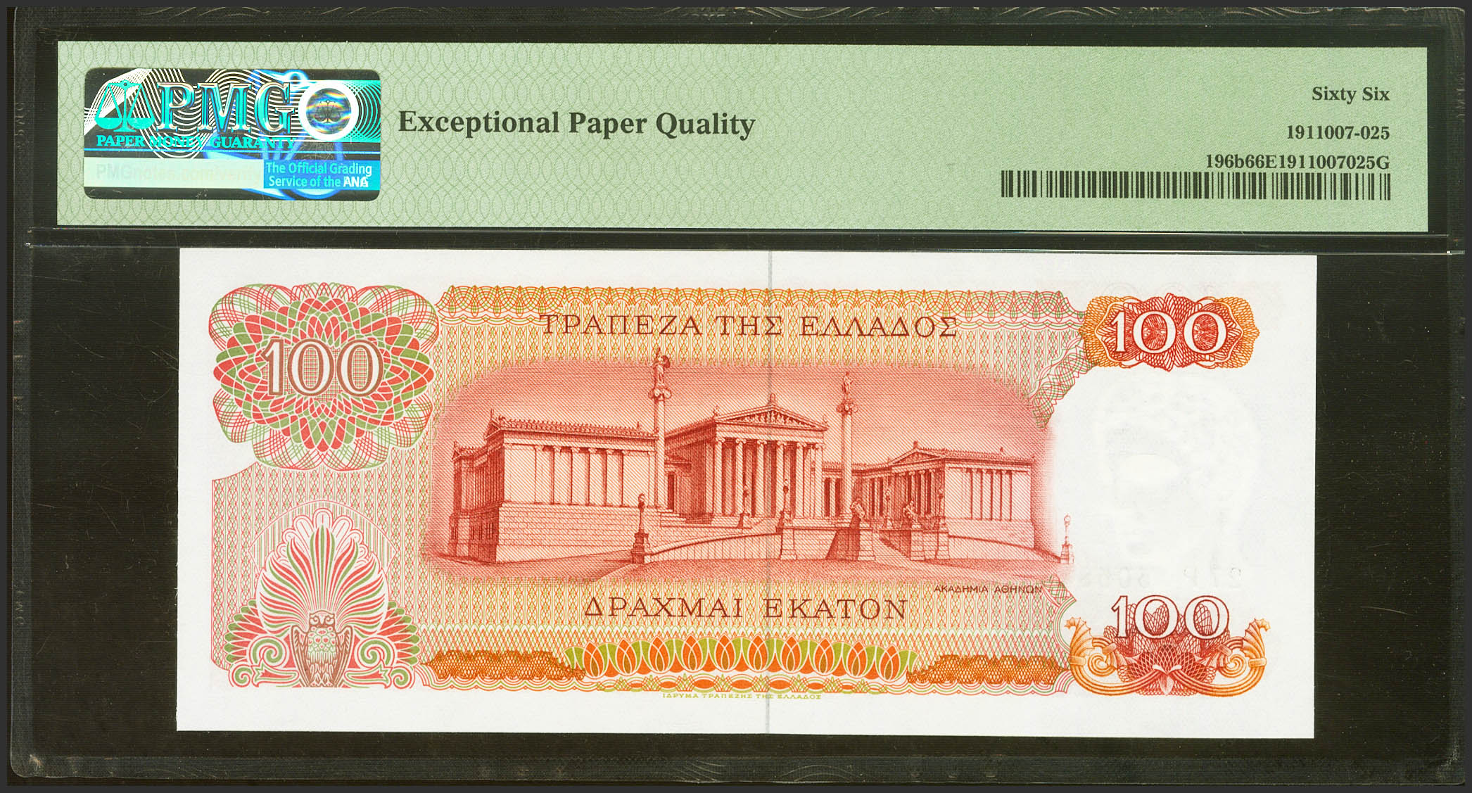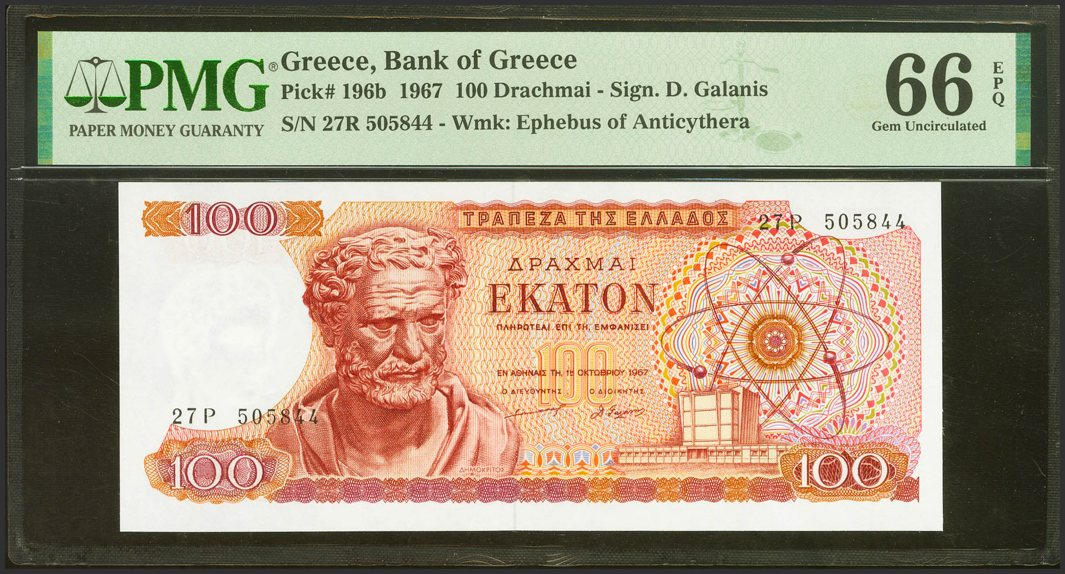 GREECE. 100 Drachmai. 1967. (Pick 196b). PMG66EPQ.