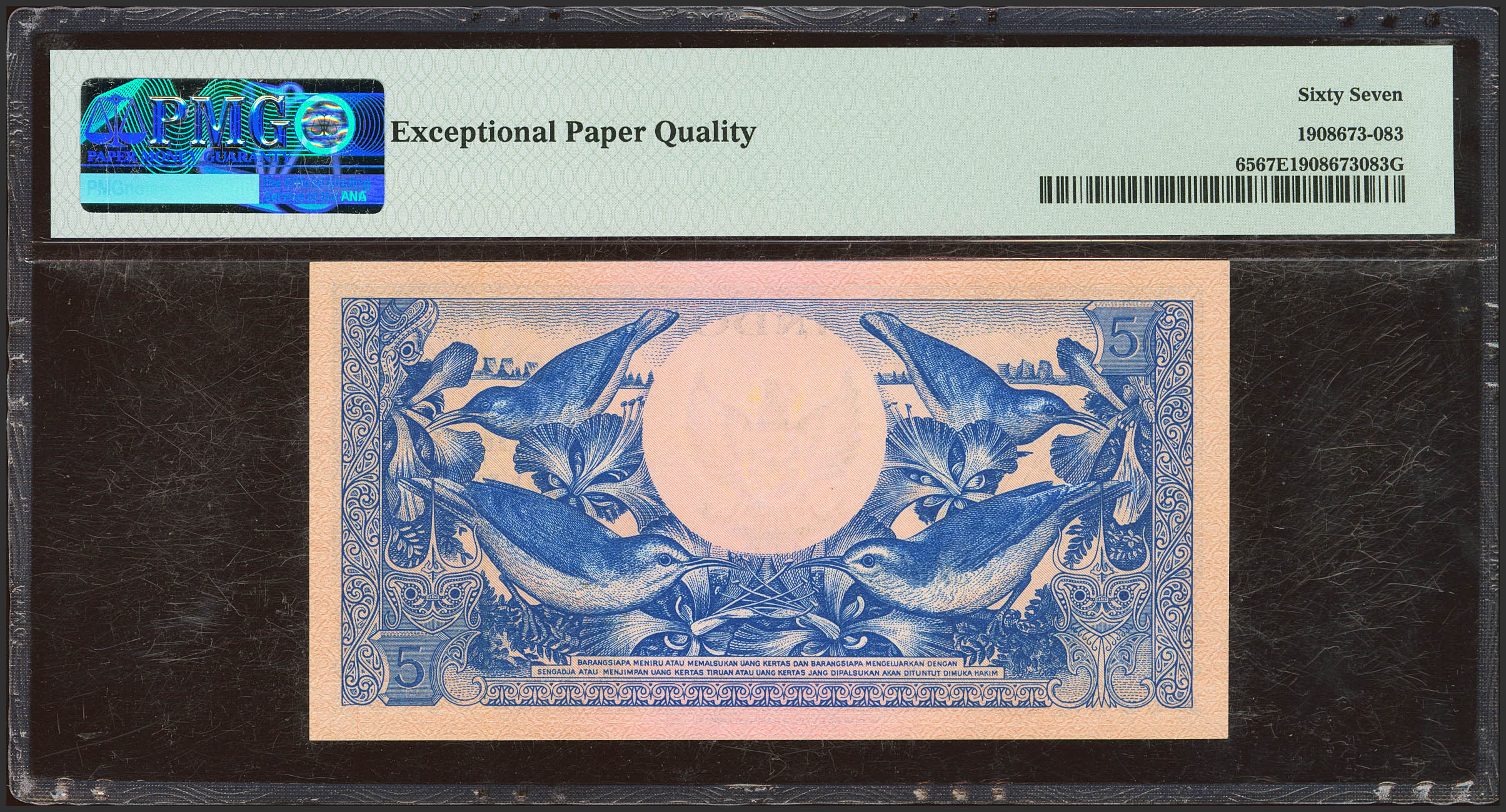 INDONESIA. 5 Rupiah. 1959. (Pick: 65). PMG67EPQ.