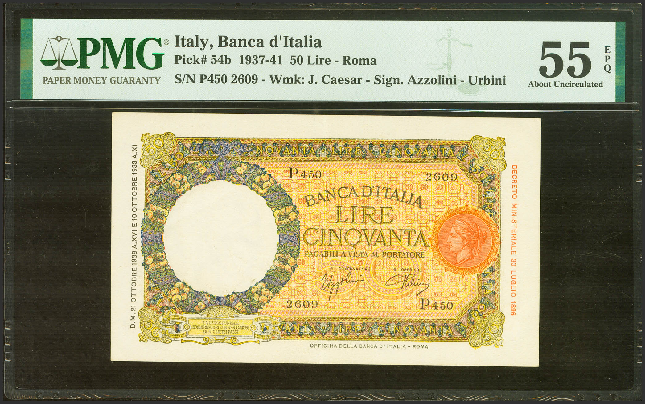 ITALY. 50 Lire. 1938. (Pick: 54b). PMG55EPQ.