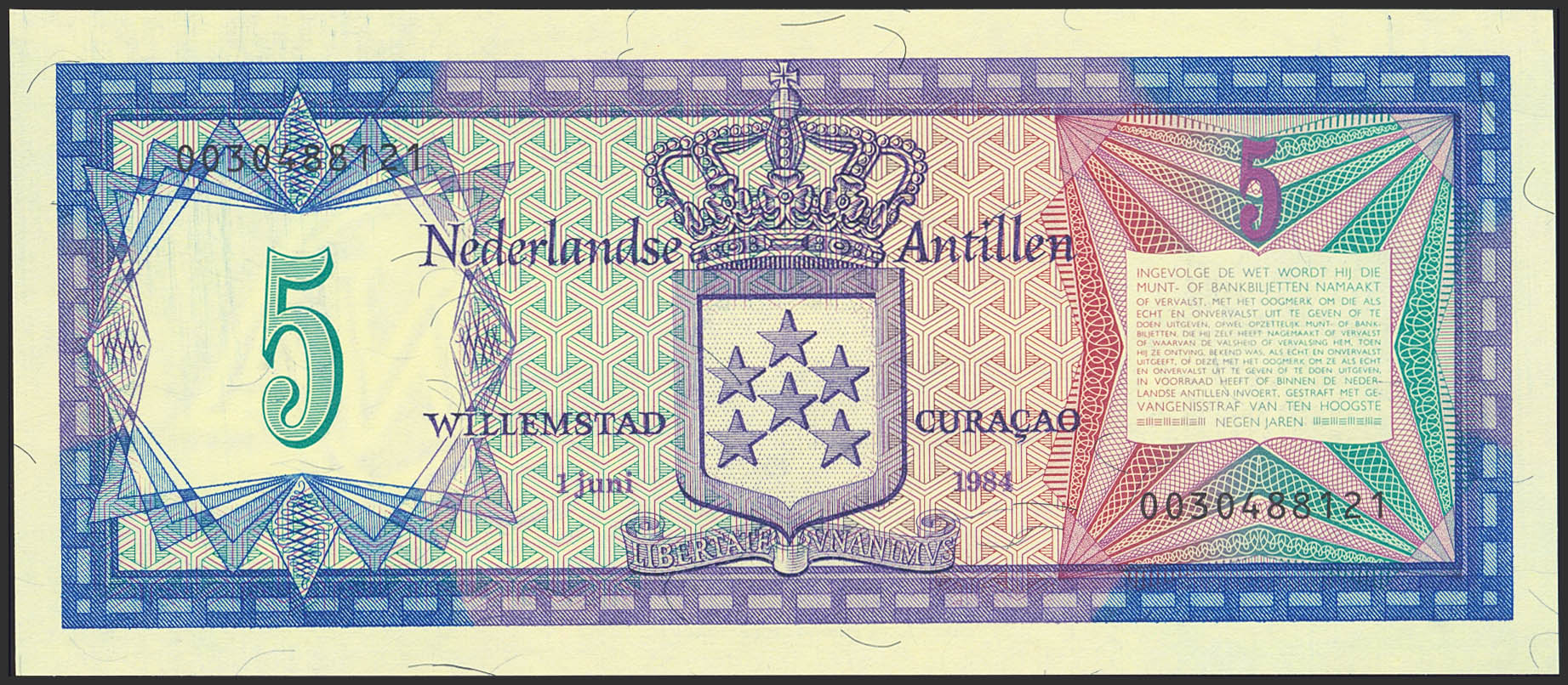 NETHERLANDS ANTILLES. 5 Gulden. 1 June 1984. (Pick: 15b). Uncirculated.