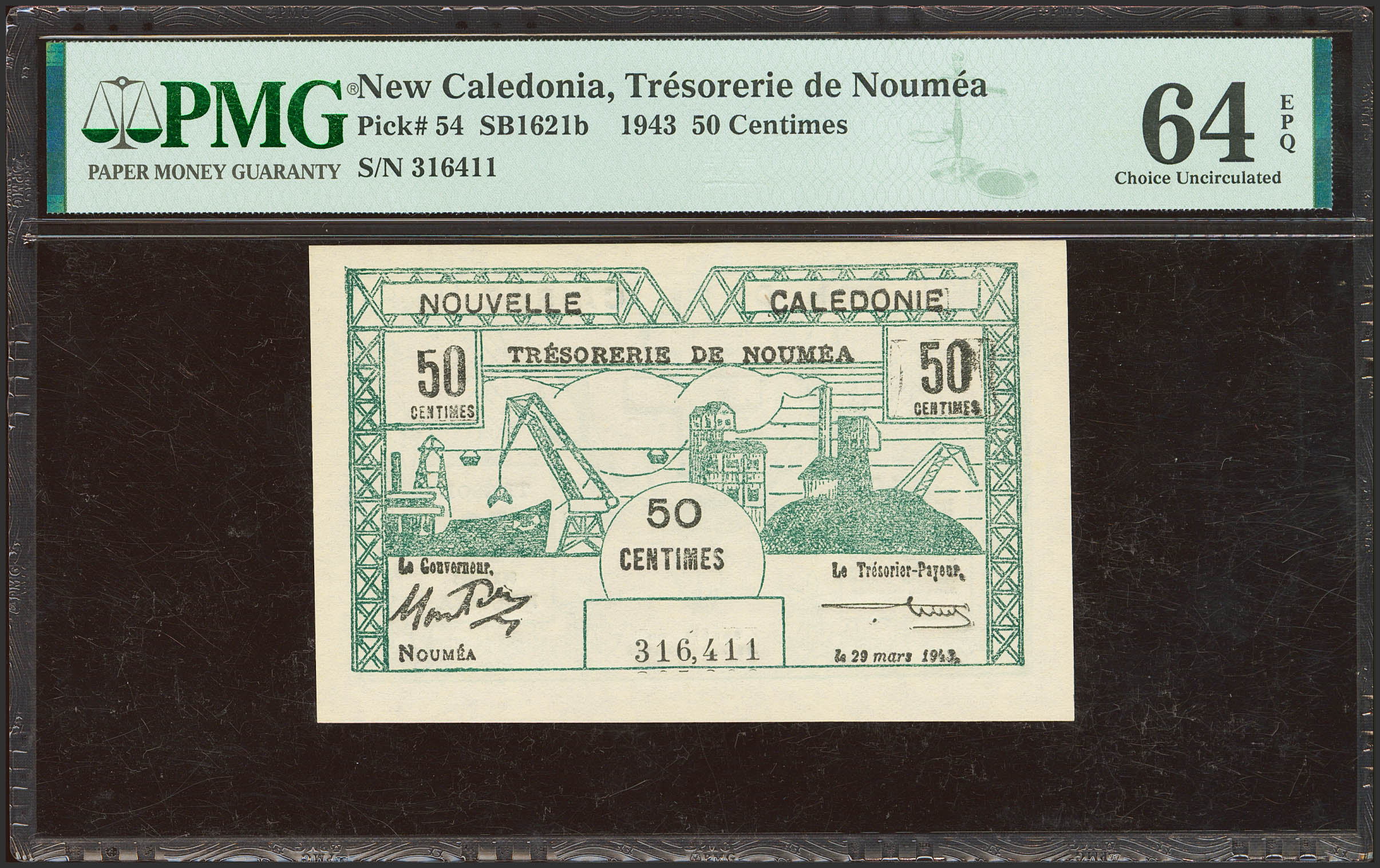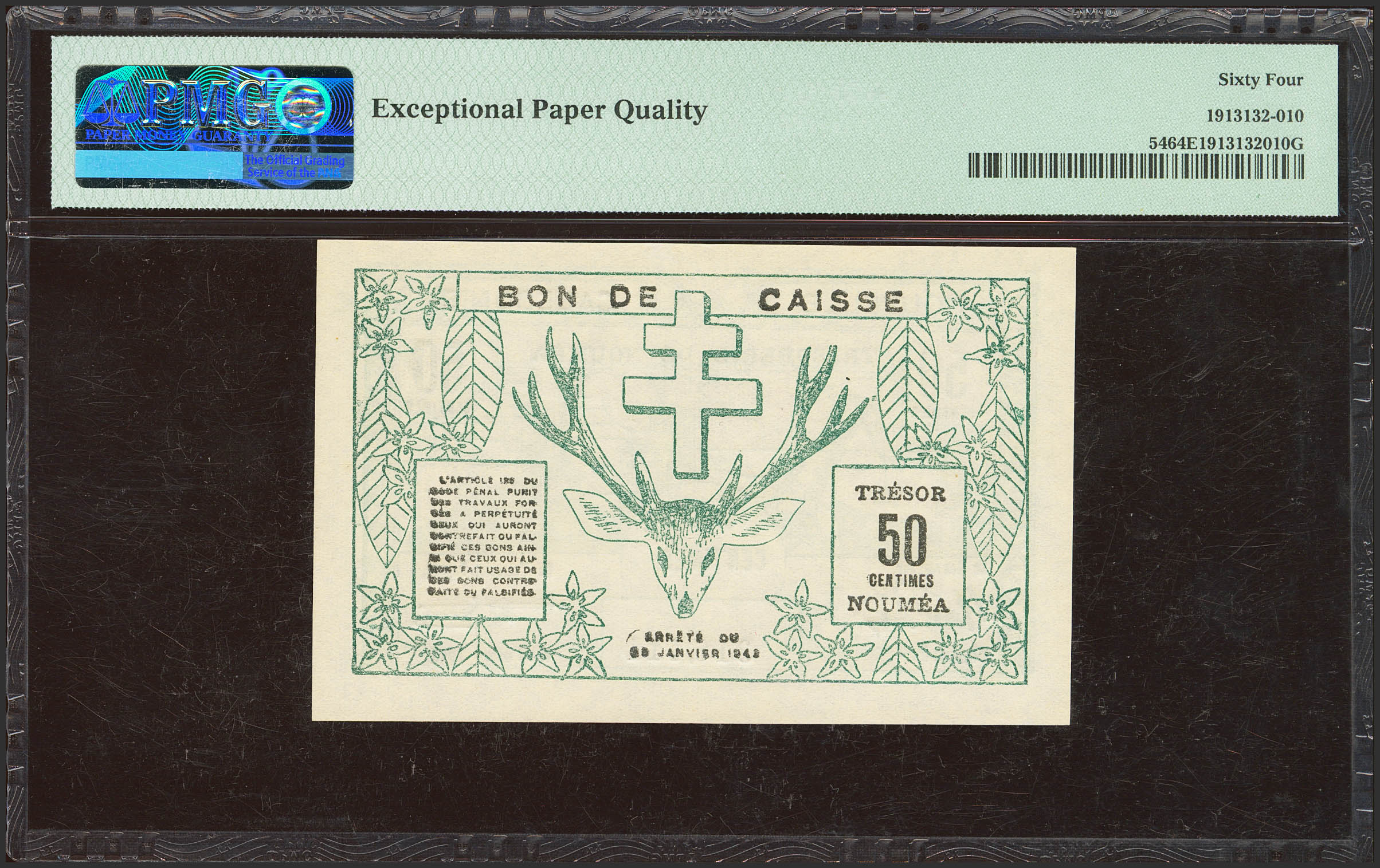 NEW CALEDONIA. 50 Centimes. 29 March 1943. (Pick: 54). PMG64EPQ.