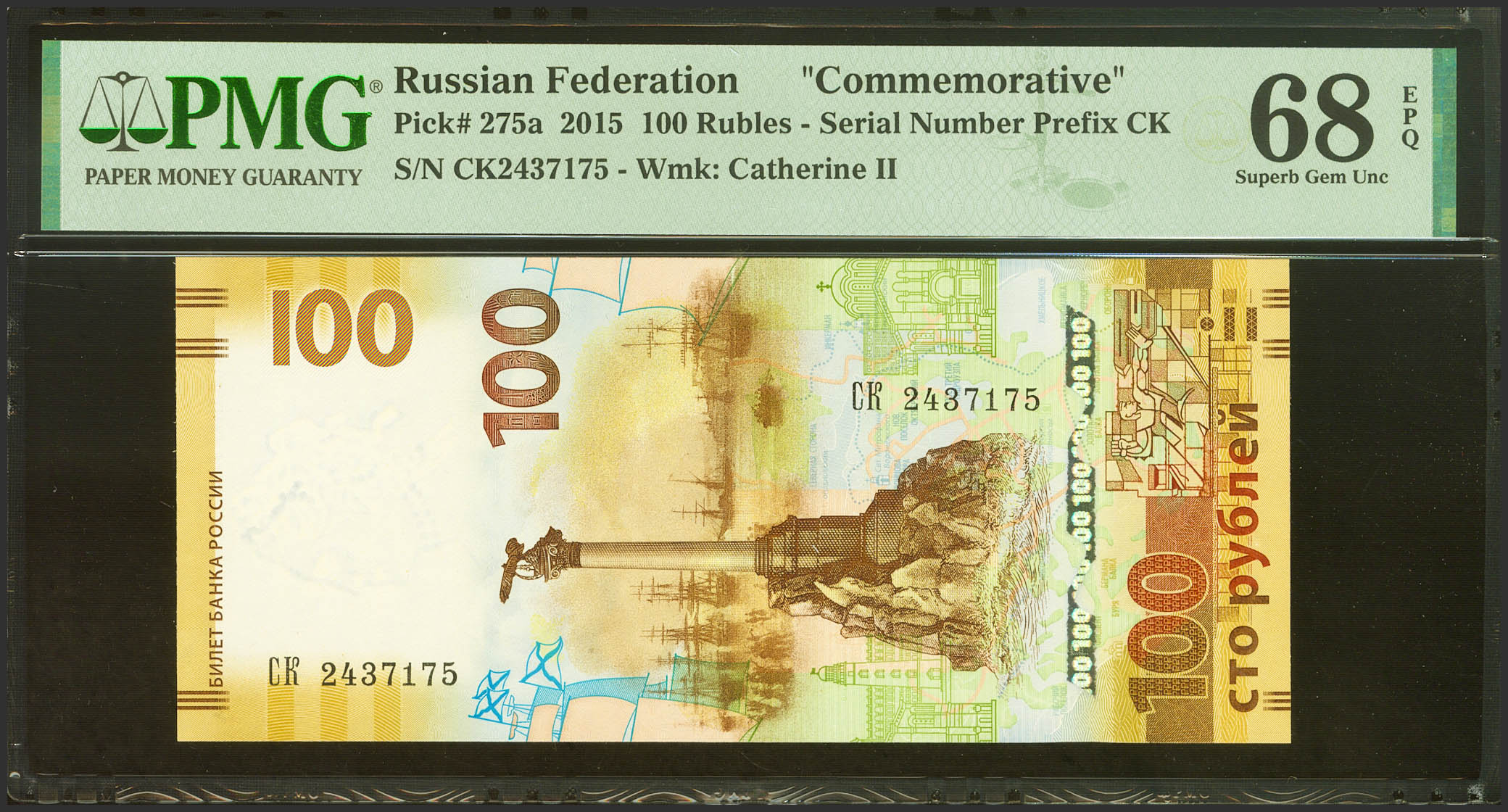 RUSSIA. 100 Rubles. 2015. (Pick: 275a). PMG68EPQ.