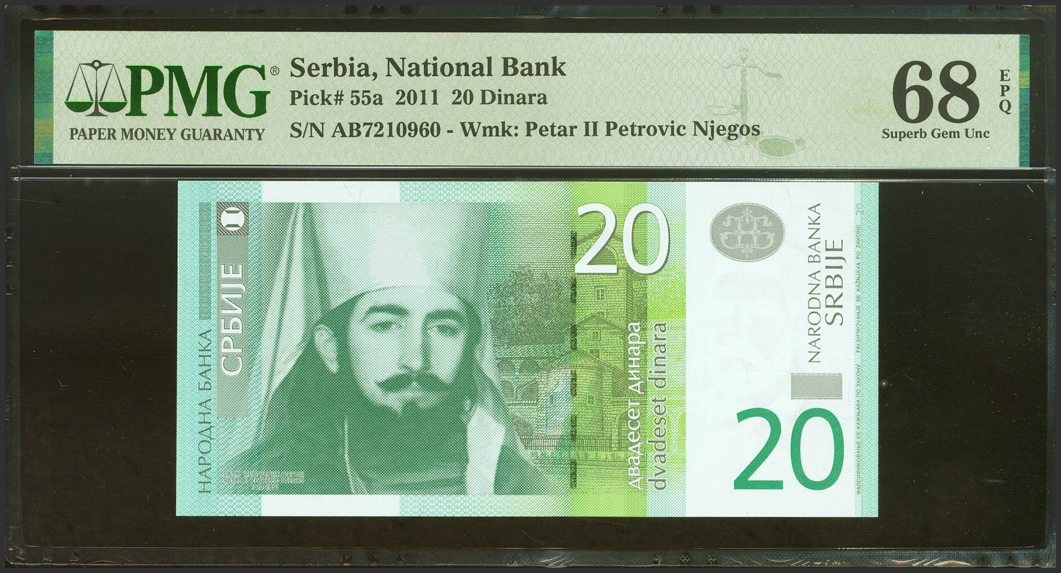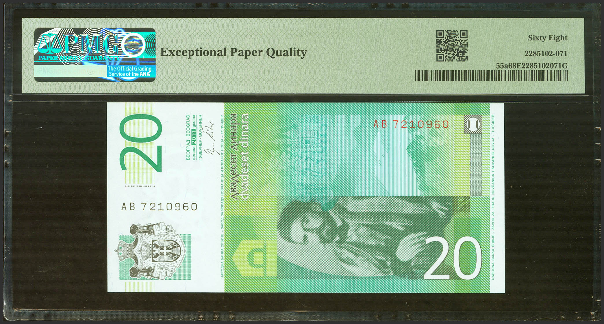 SERBIA. 20 Dinars. 2011. (Pick: 55a). PMG68EPQ.