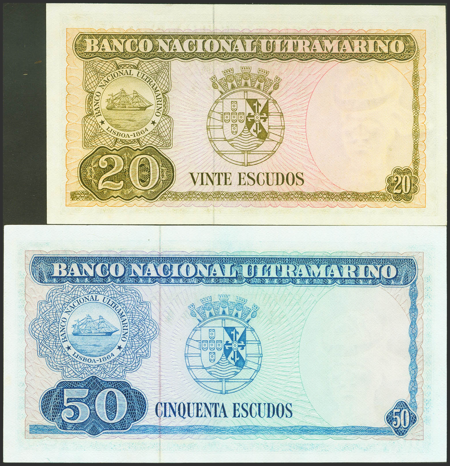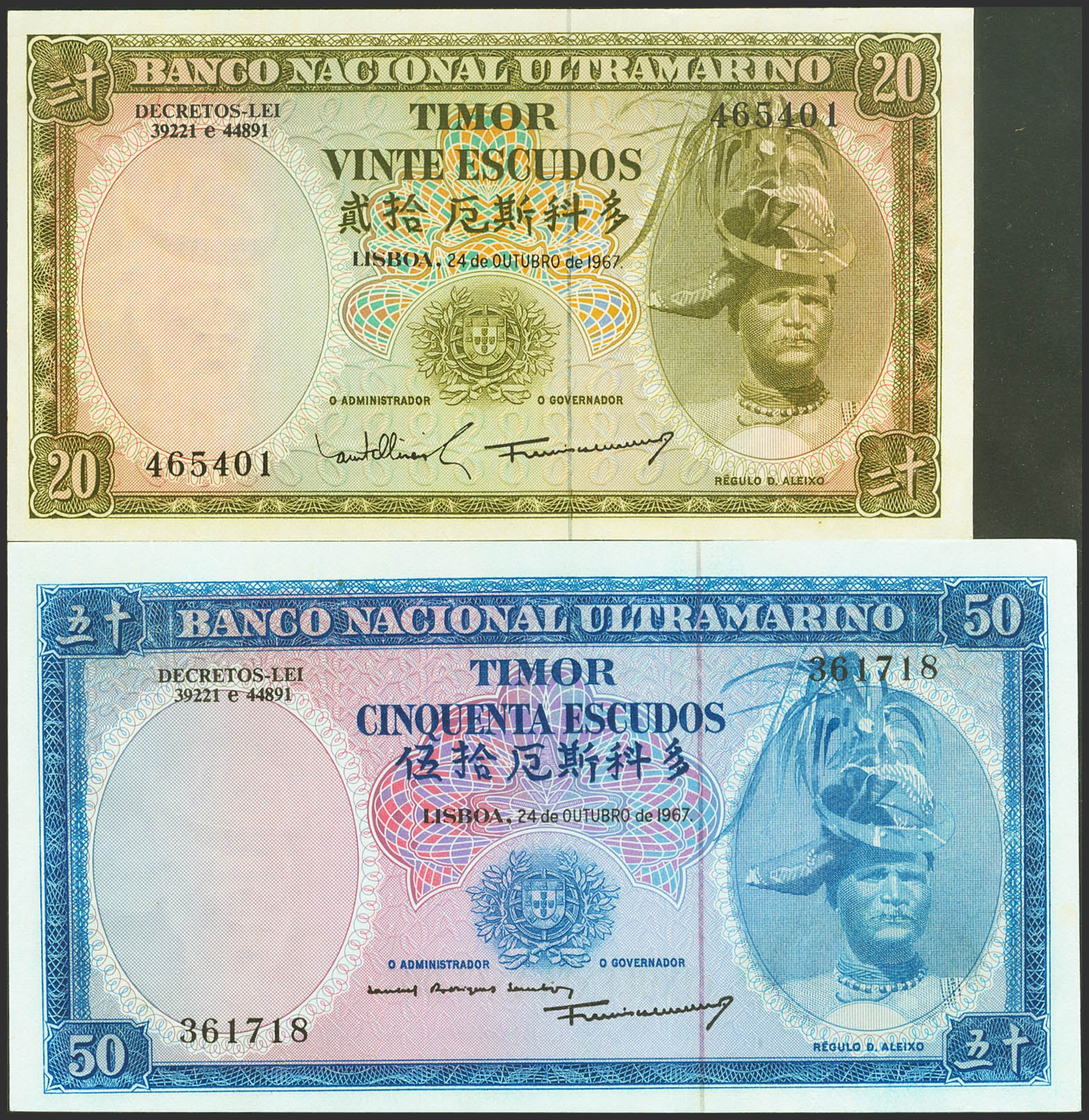 TIMOR. 20 Escudos and 50 Escudos. 1967. (Pick 26a, 27a). Uncirculated.
