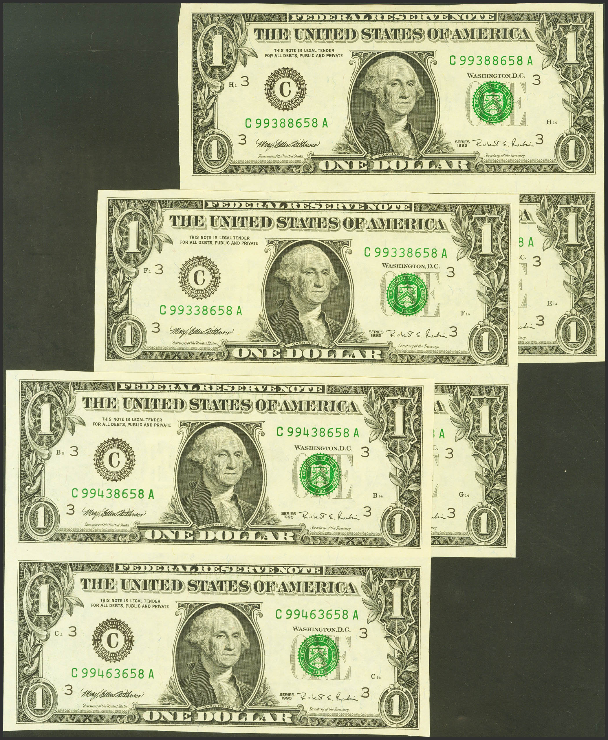 UNITED STATES OF AMERICA. Set of 3 uncut pairs of 1 Dollar. 1995. Uncirculated.