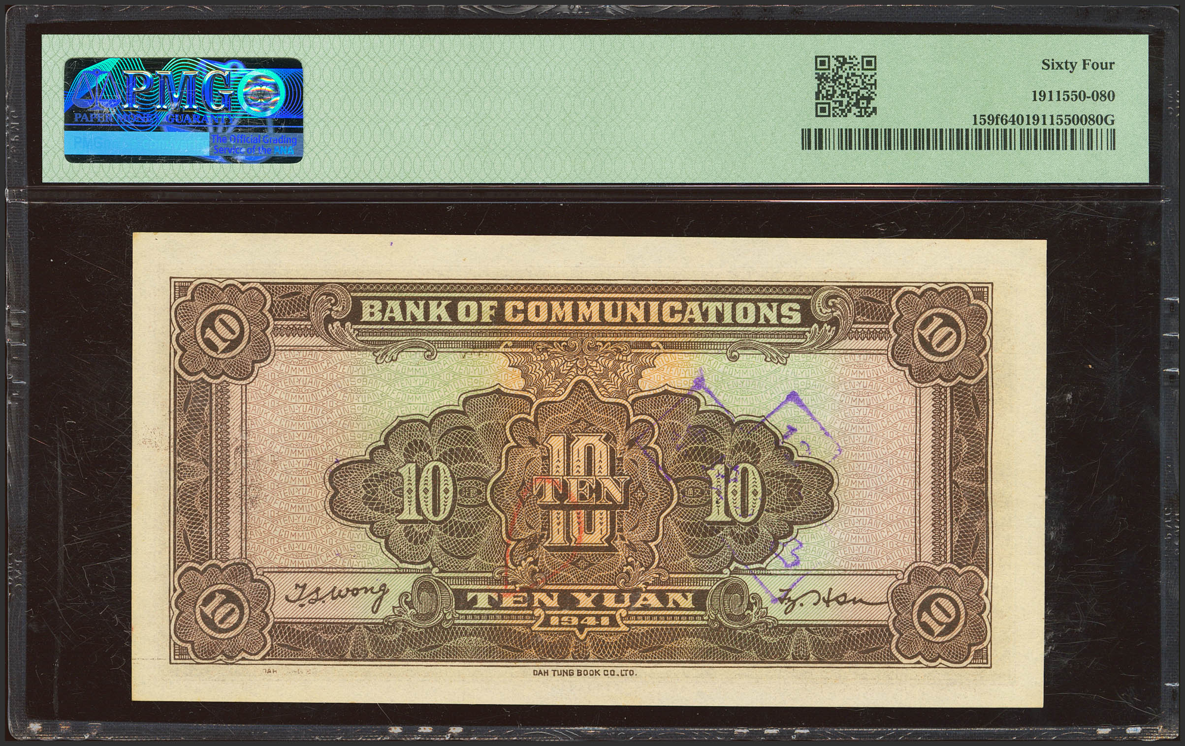 CHINA. 10 Yuan. 1941. (Pick: 156f). PMG64.