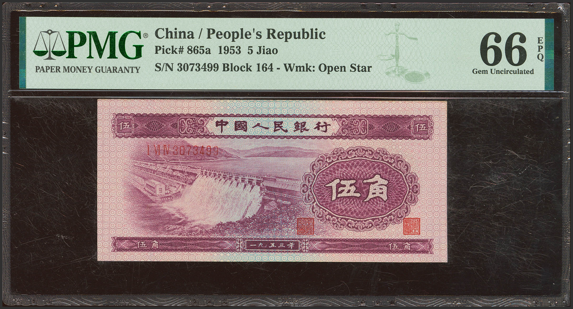 CHINA. 5 Jiao. 1953. (Pick: 865a). PMG66EPQ.