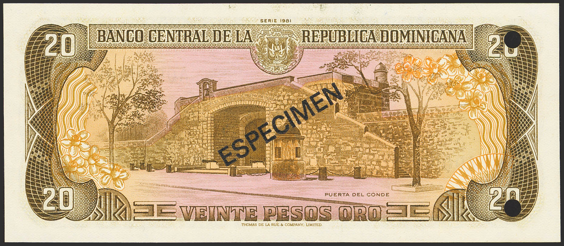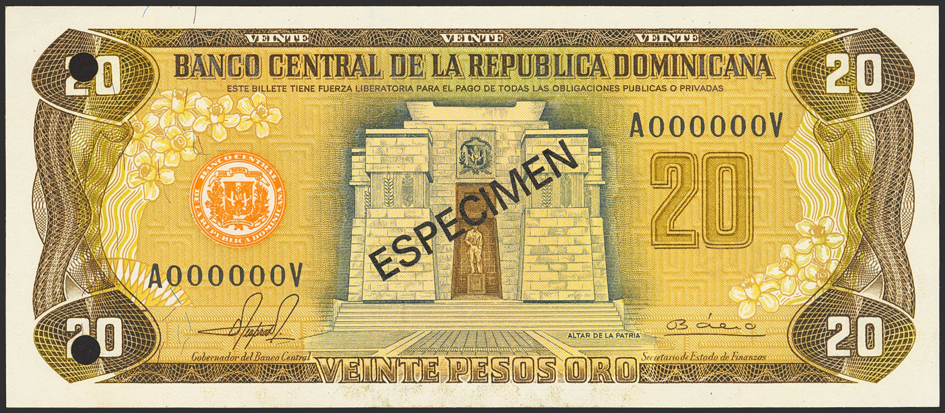 DOMINICAN REPUBLIC. 20 Pesos de Oro. 1981. ESPECIMEN and Numeration 000000. (Pick: 120s1). Uncirculated.