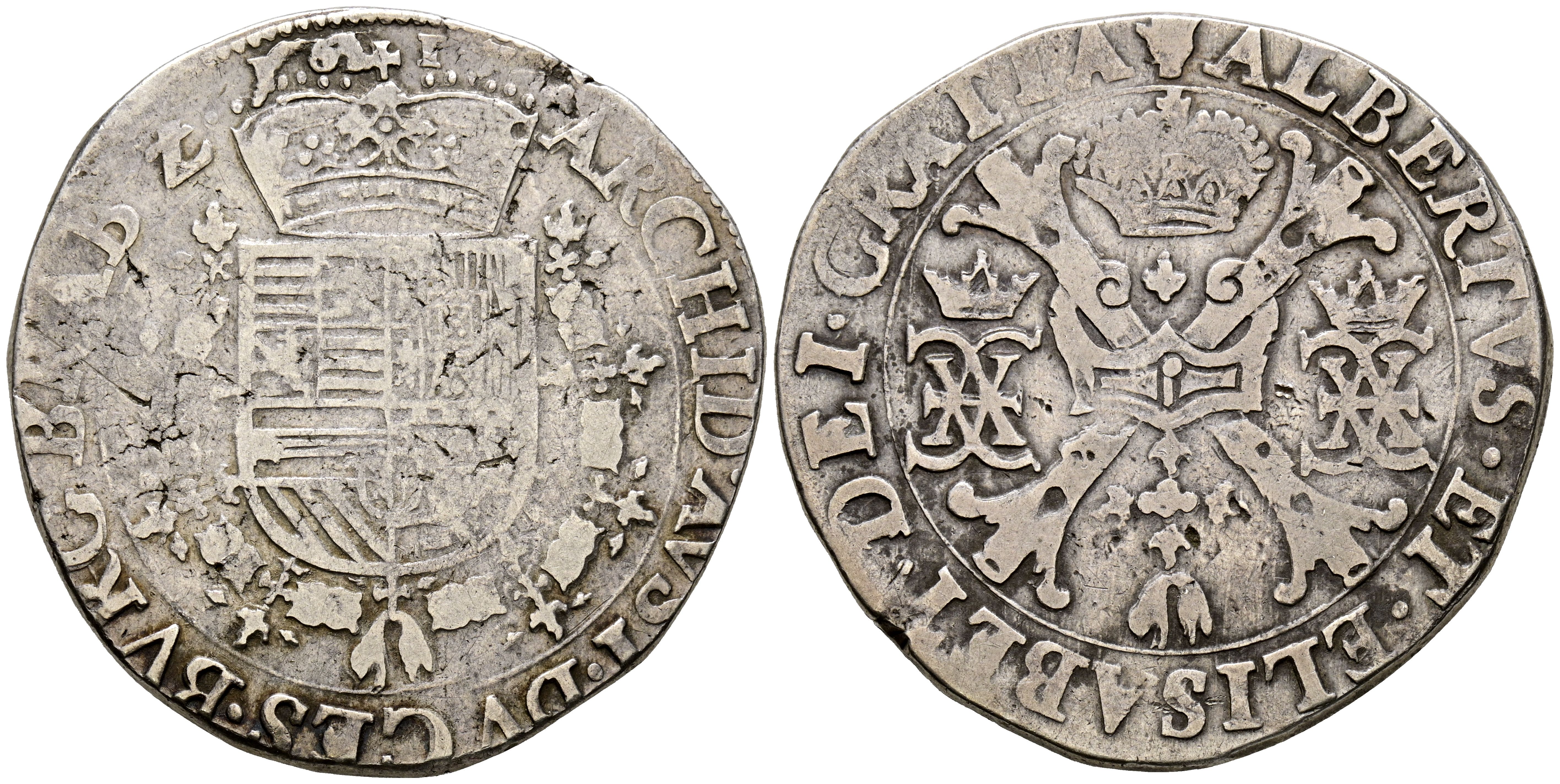 ALBERT AND ISABEL (1598-1621). 1 Patagon. (Ar. 25.60g/36mm). 1617. Antwerp. (Vicenti 349). Very Fine. Limited.
