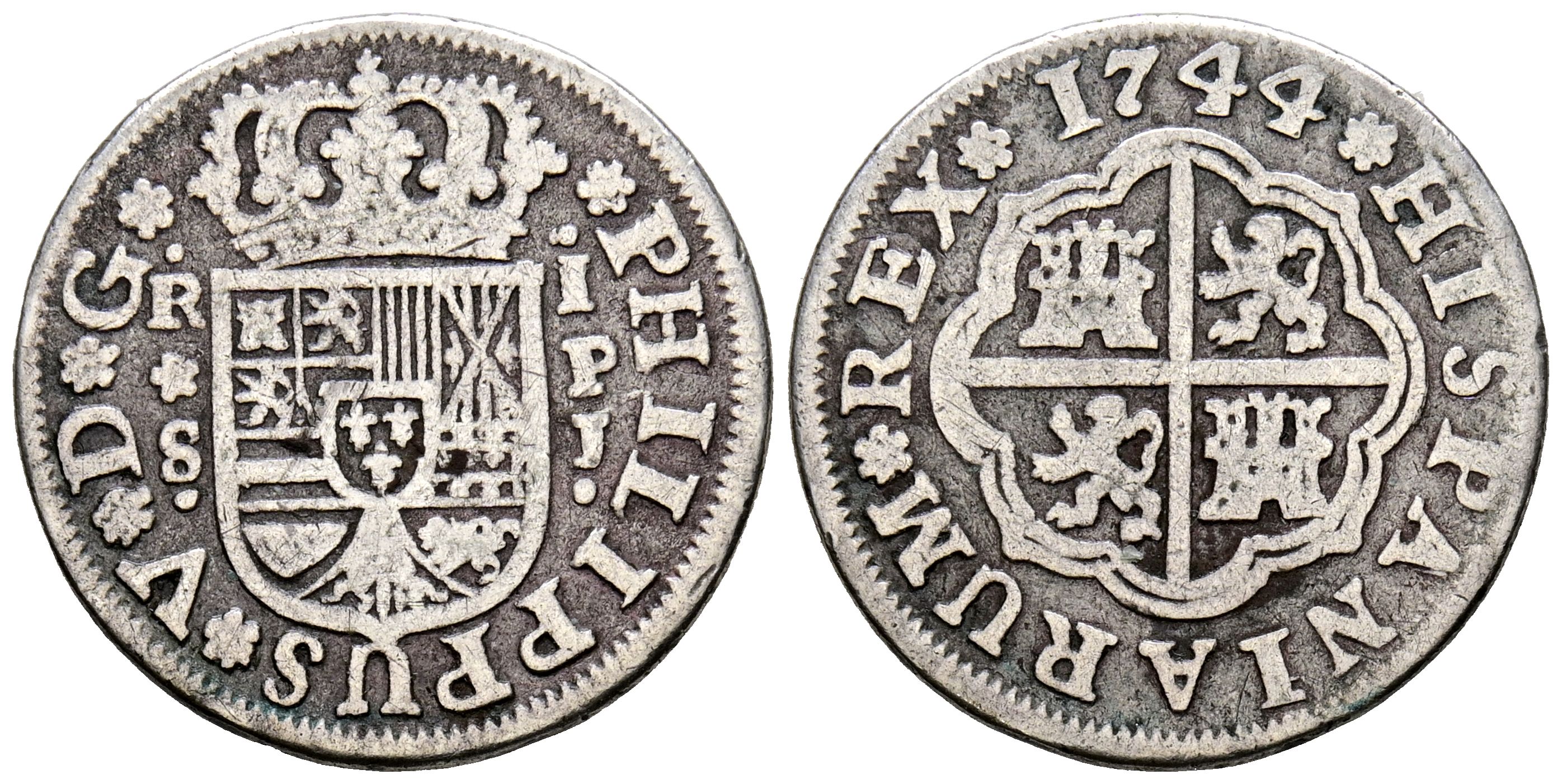 PHILIP V (1700-1746). 1 Real. (Ar. 2.57g/19mm). 1744. Sevilla PJ. (Cal-2019-667). Almost Very Fine.
