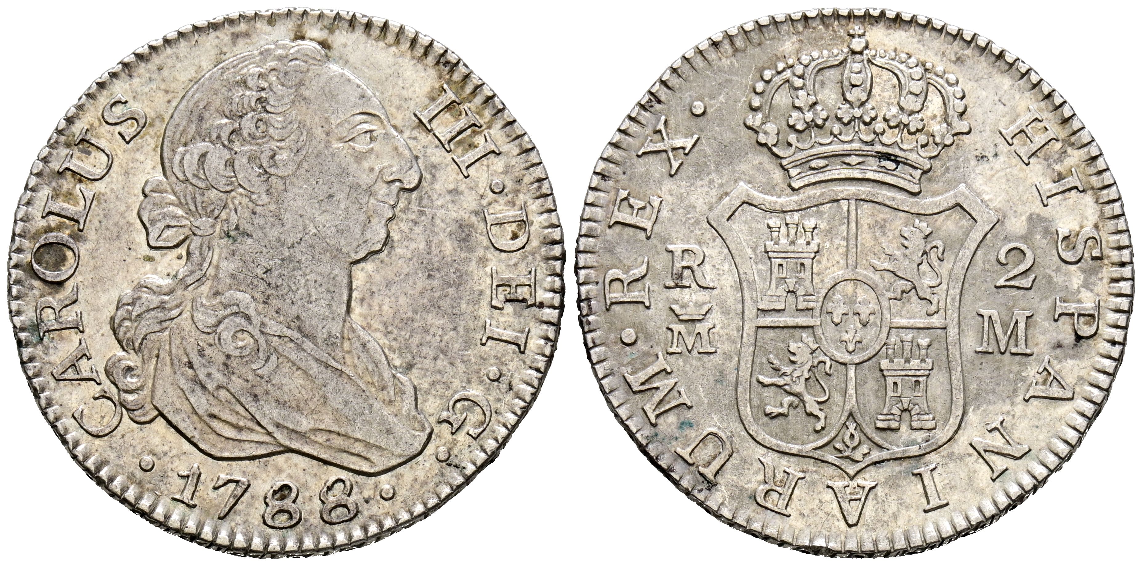 CARLOS III (1759-1788). 2 Reales. (Ar. 5.92g/26mm). 1788. Madrid M. (Cal-2019-640). Very Fine. Remnants of original shine.