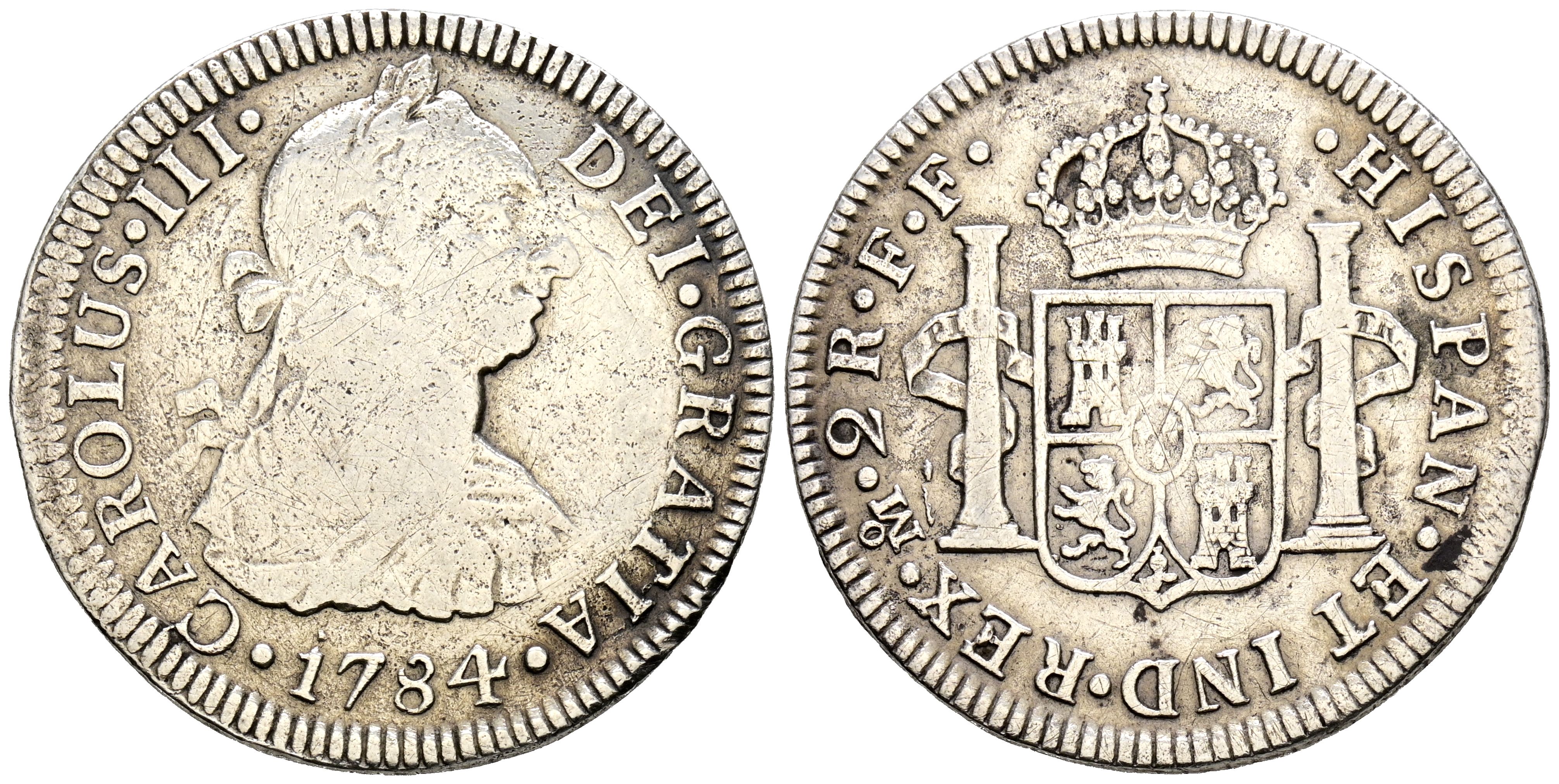 CARLOS III (1759-1788). 2 Reales. (Ar. 6.43g/29mm). 1784. Mexico FF. (Cal-2019-674). Almost Very Fine. Cleaned.