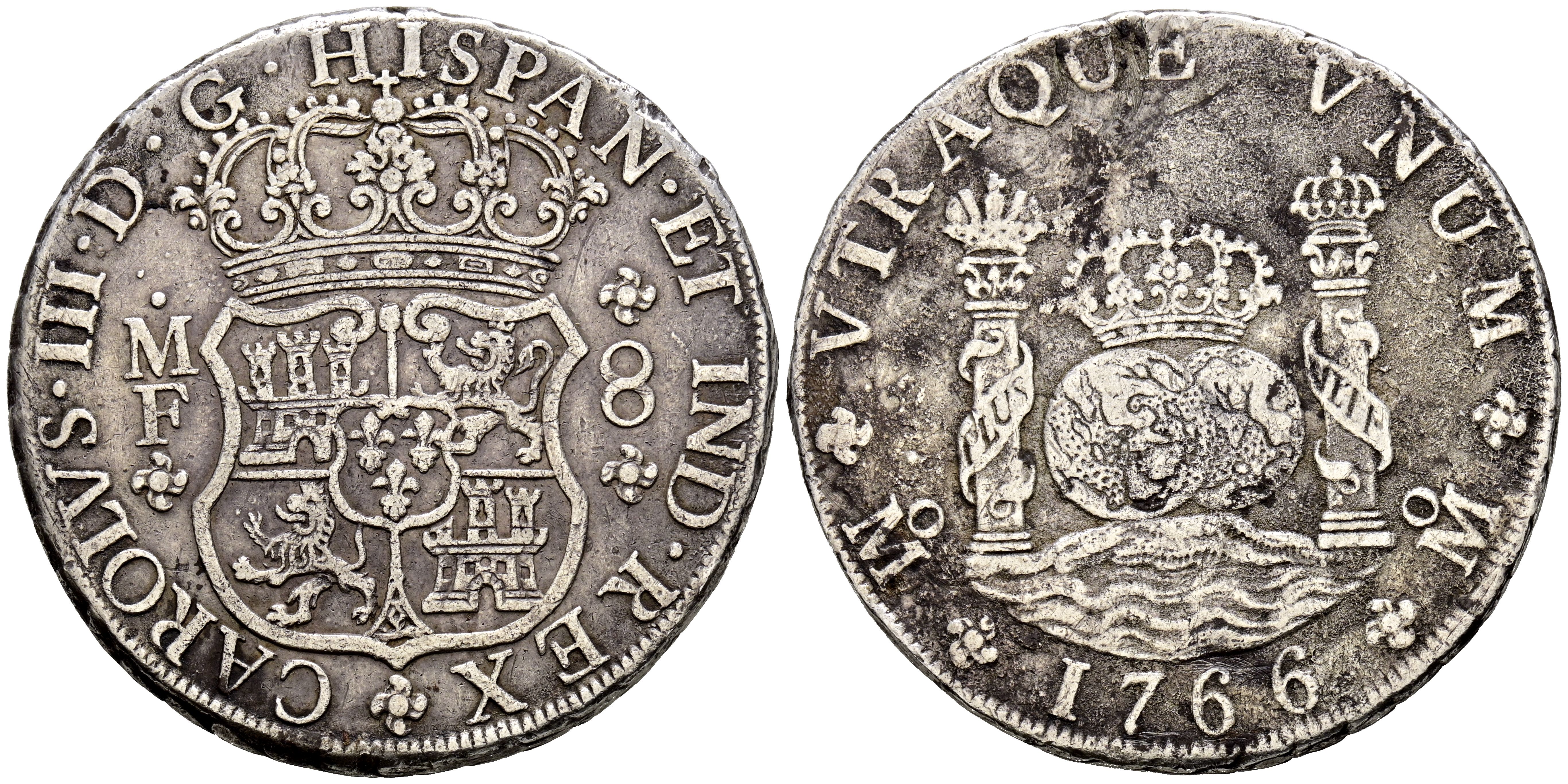 English CARLOS III (1759-1788). 8 Reales. (Ar. 26.24g/39mm). 1766. Mexico MF. (Cal-2019-1090). Very Fine/ Almost Very Fine. Oxidations.