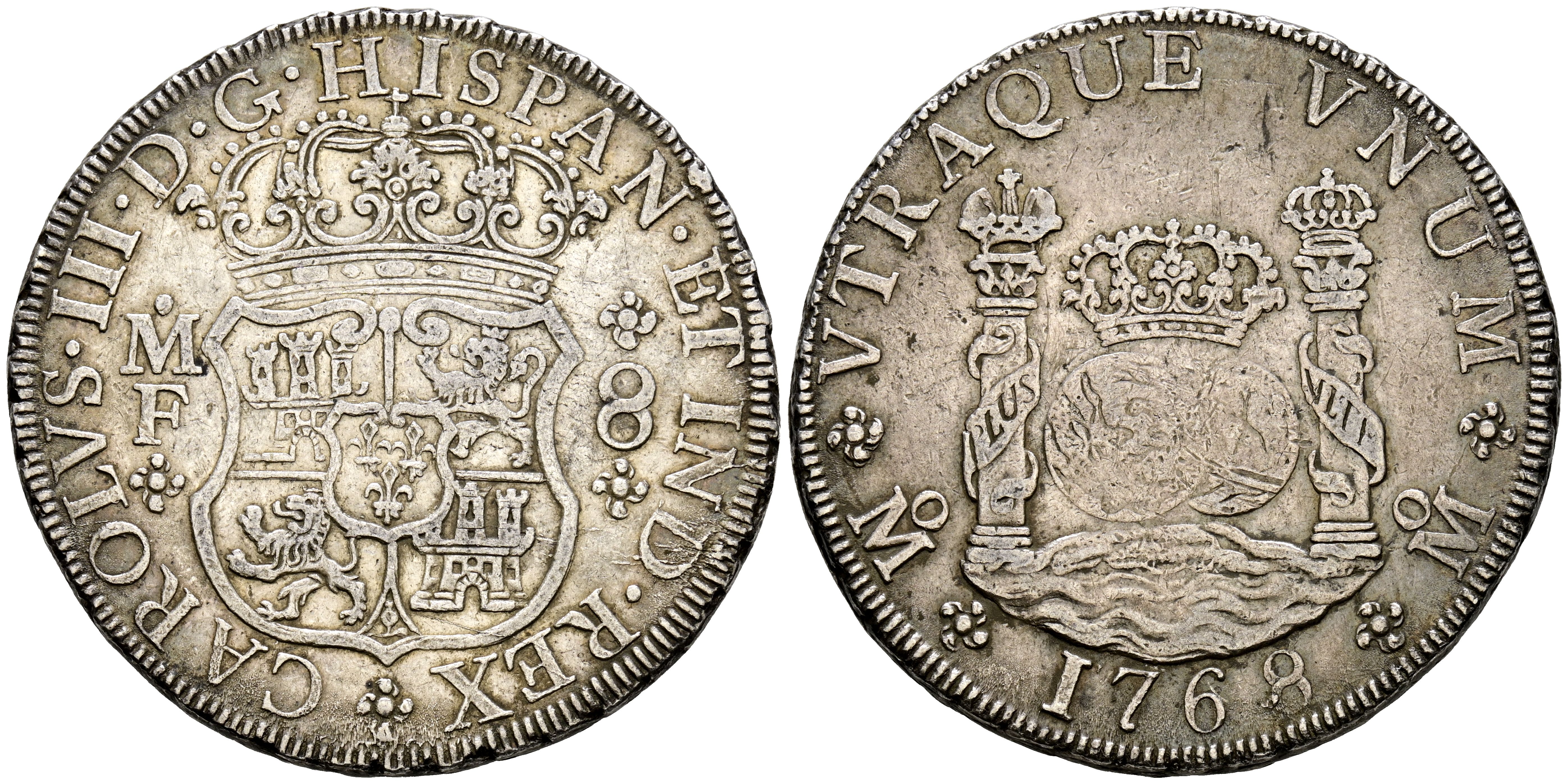 CARLOS III (1759-1788). 8 Reales. (Ar. 26.95g/39mm). 1768. Mexico MF. (Cal-2019-1094). Very Fine.