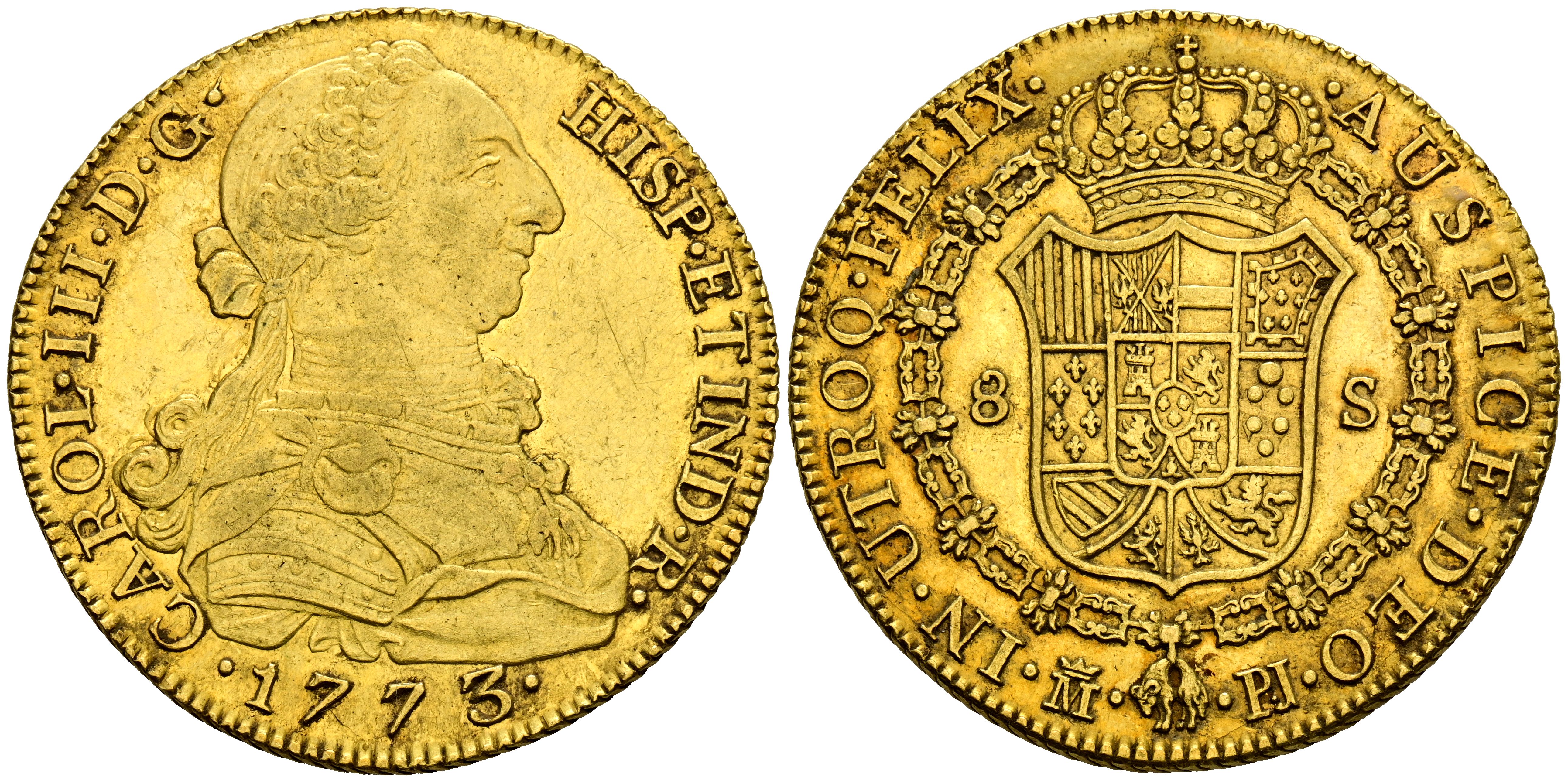 CARLOS III (1759-1788). 8 Escudos. (Au. 26.93g/37mm). 1773 Madrid PJ. (Cal-2019-1958). Almost Extremely Fine. Remnants of original shine