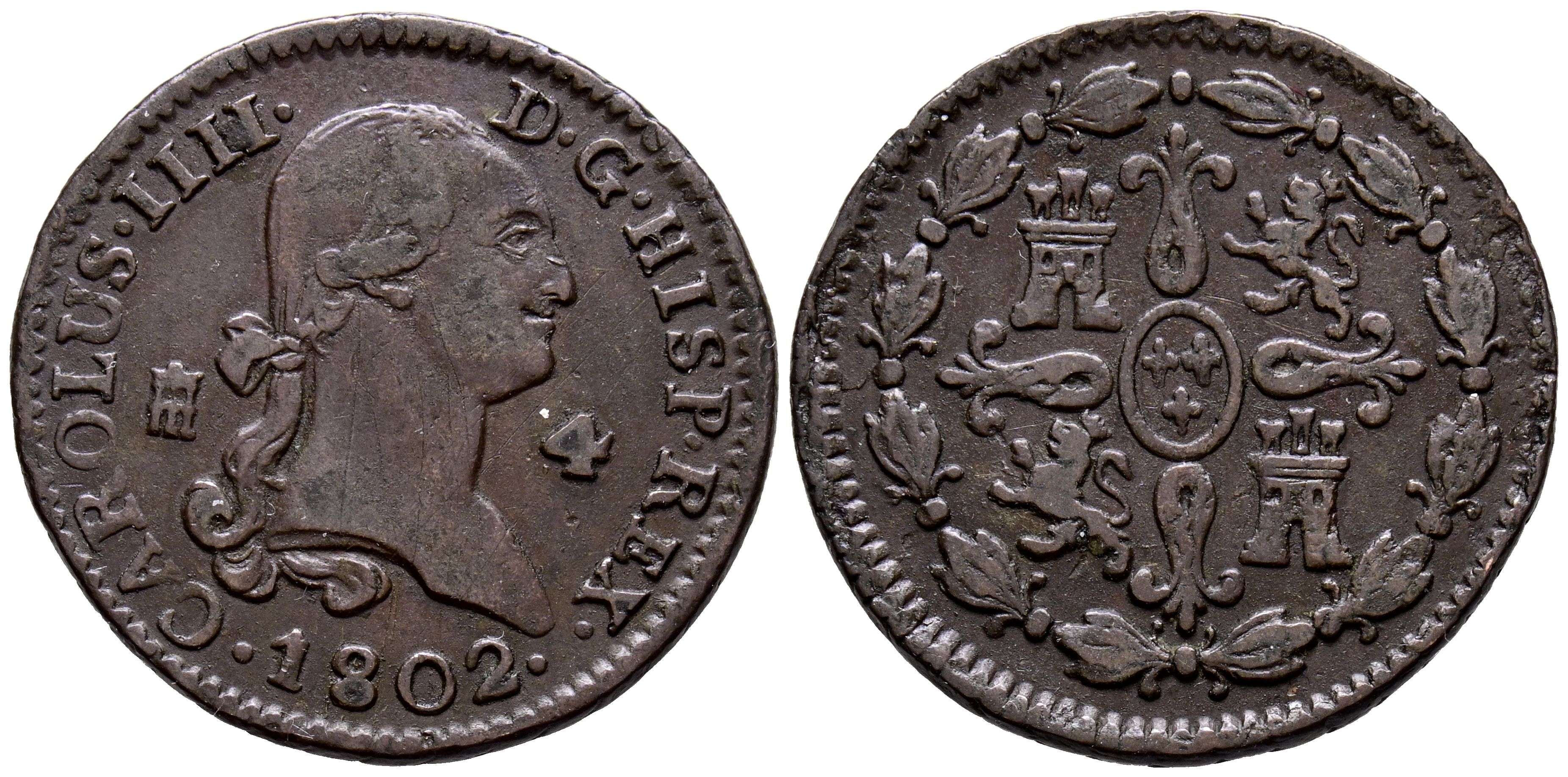 CARLOS IV (1788-1808). 4 Maravedis. (Ae. 5.06g/26mm). 1802. Segovia. (Cal-2019-56). Good Very Fine.