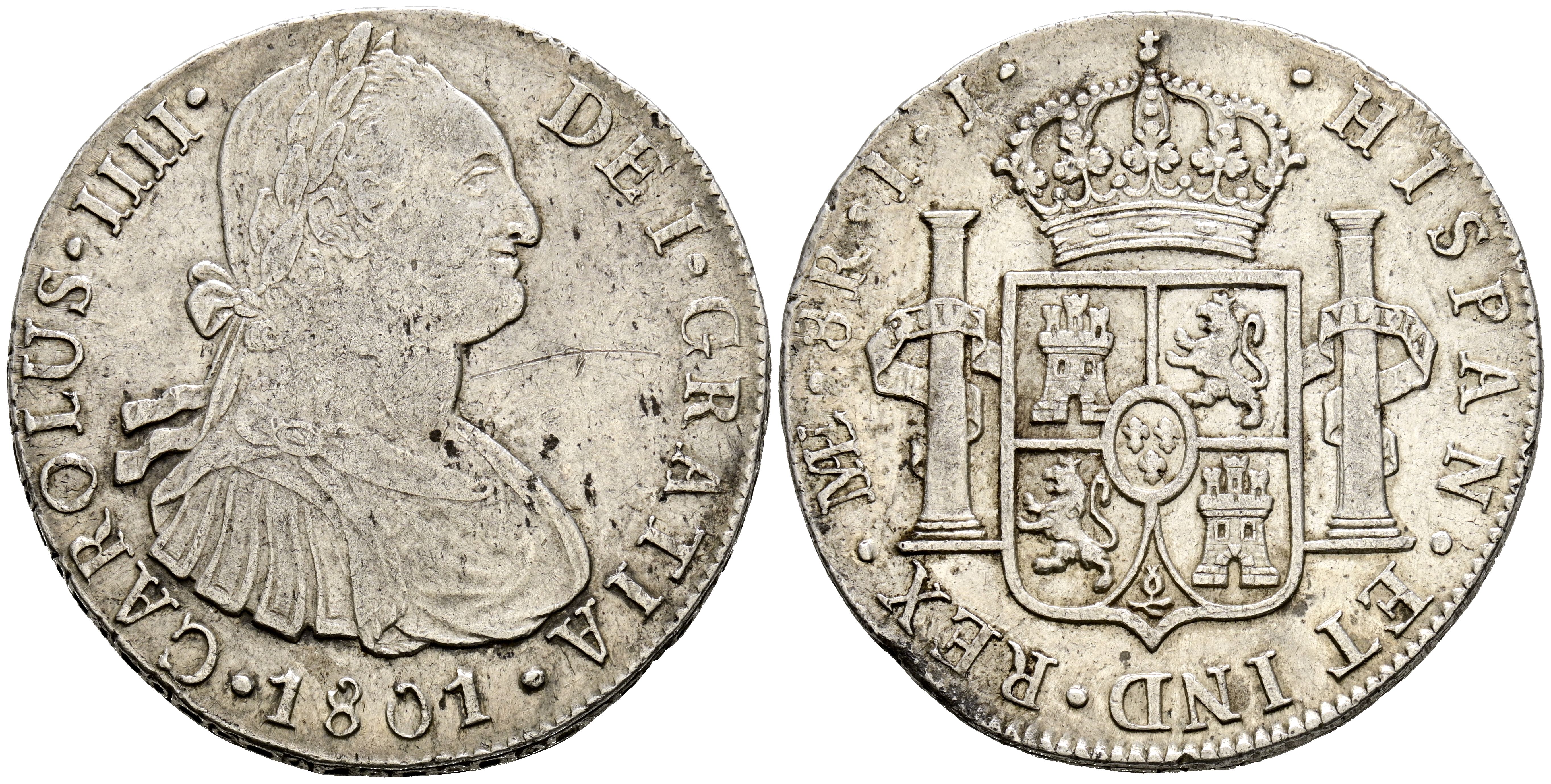 English CARLOS IV (1788-1808). 8 Reales. (Ar. 26.82g/39mm). 1801. Lima IJ. (Cal-2019-919). Very Fine/ Good Very Fine.