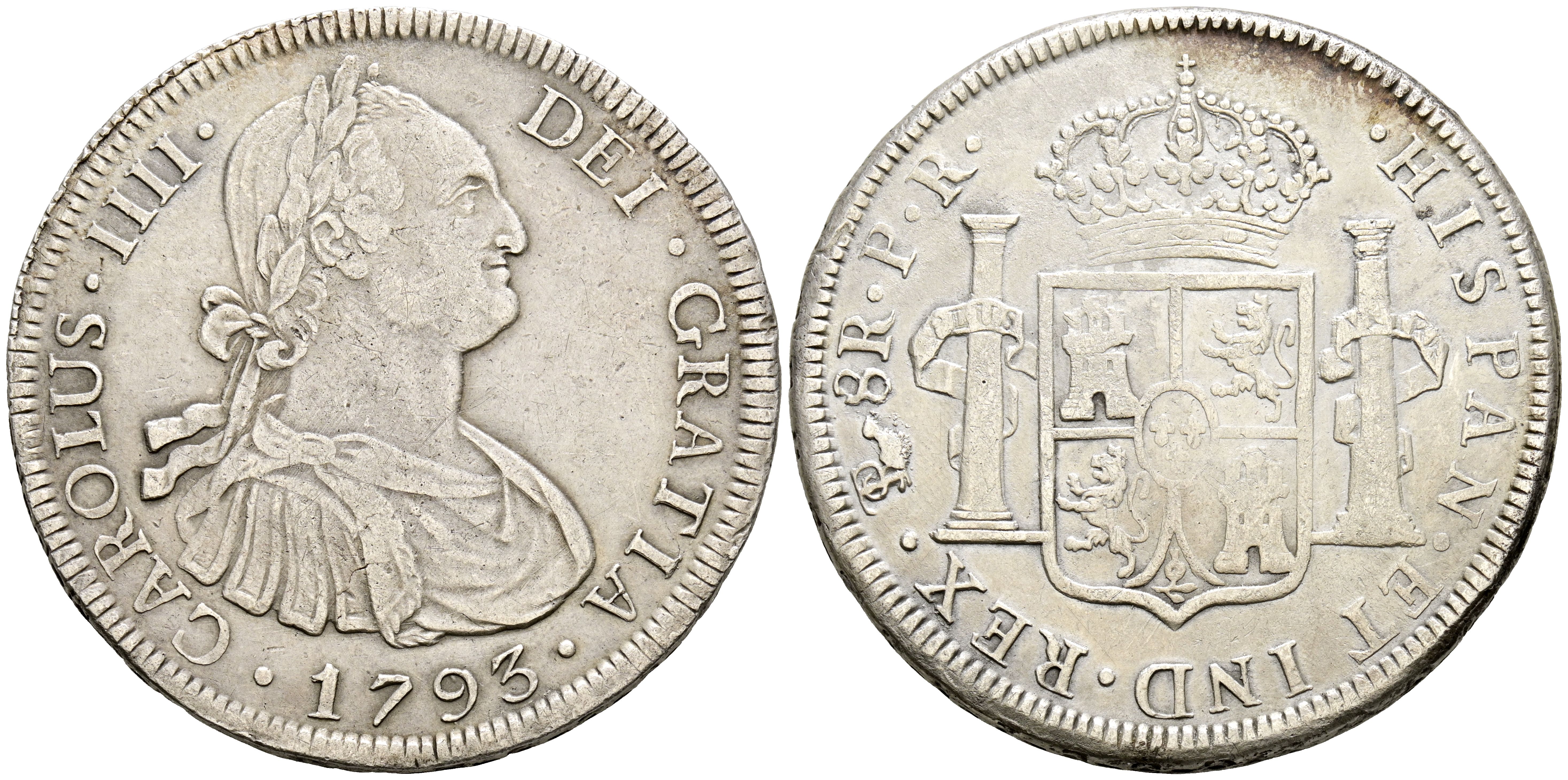 CARLOS IV (1788-1808). 8 Reales. (Ar. 26.60g/41mm). 1793. Potosí PR. (Cal-2019-993). Very Fine.