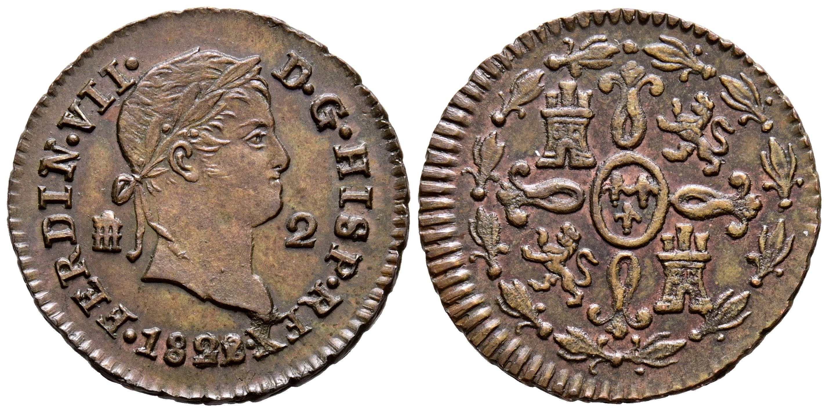 English FERDINAND VII (1808-1833). 2 Maravedis. (Ae. 2.30g/20mm). 1820? Segovia. (Cal-2019-Type 57). Good Extremely Fine. Little rectification of date.