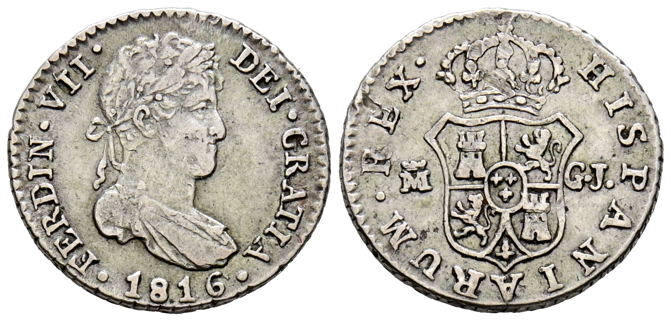 FERDINAND VII (1808-1833). 1/2 Real. (Ar. 1.52g/15mm). 1816. Madrid GJ. (Cal-2019-370). Very Fine.