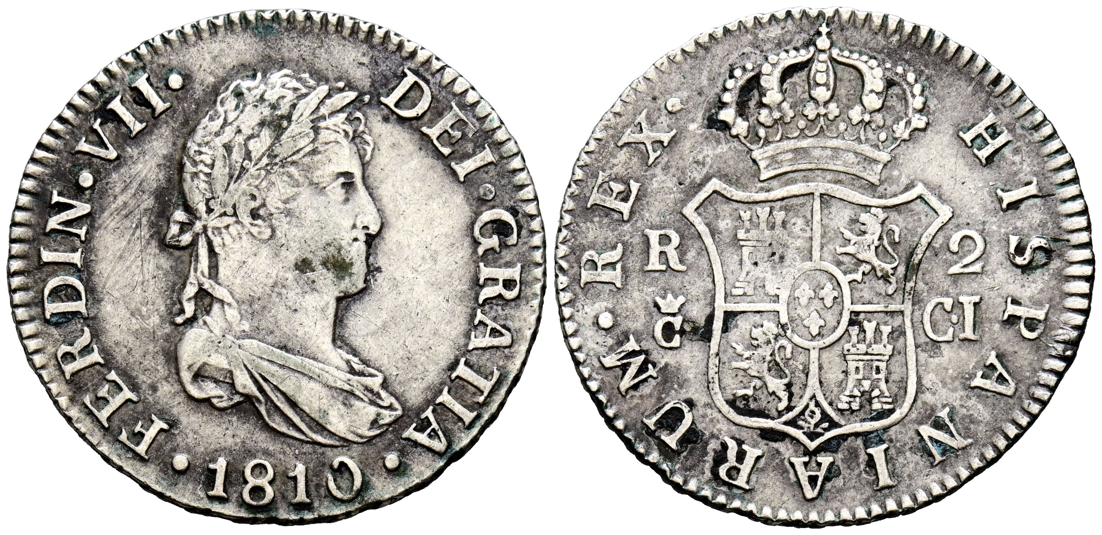 FERDINAND VII (1808-1833). 2 Reales. (Ar. 5.75g/27mm). 1810. Cádiz CI. (Cal-2019-723). Small mint mark. Very Fine