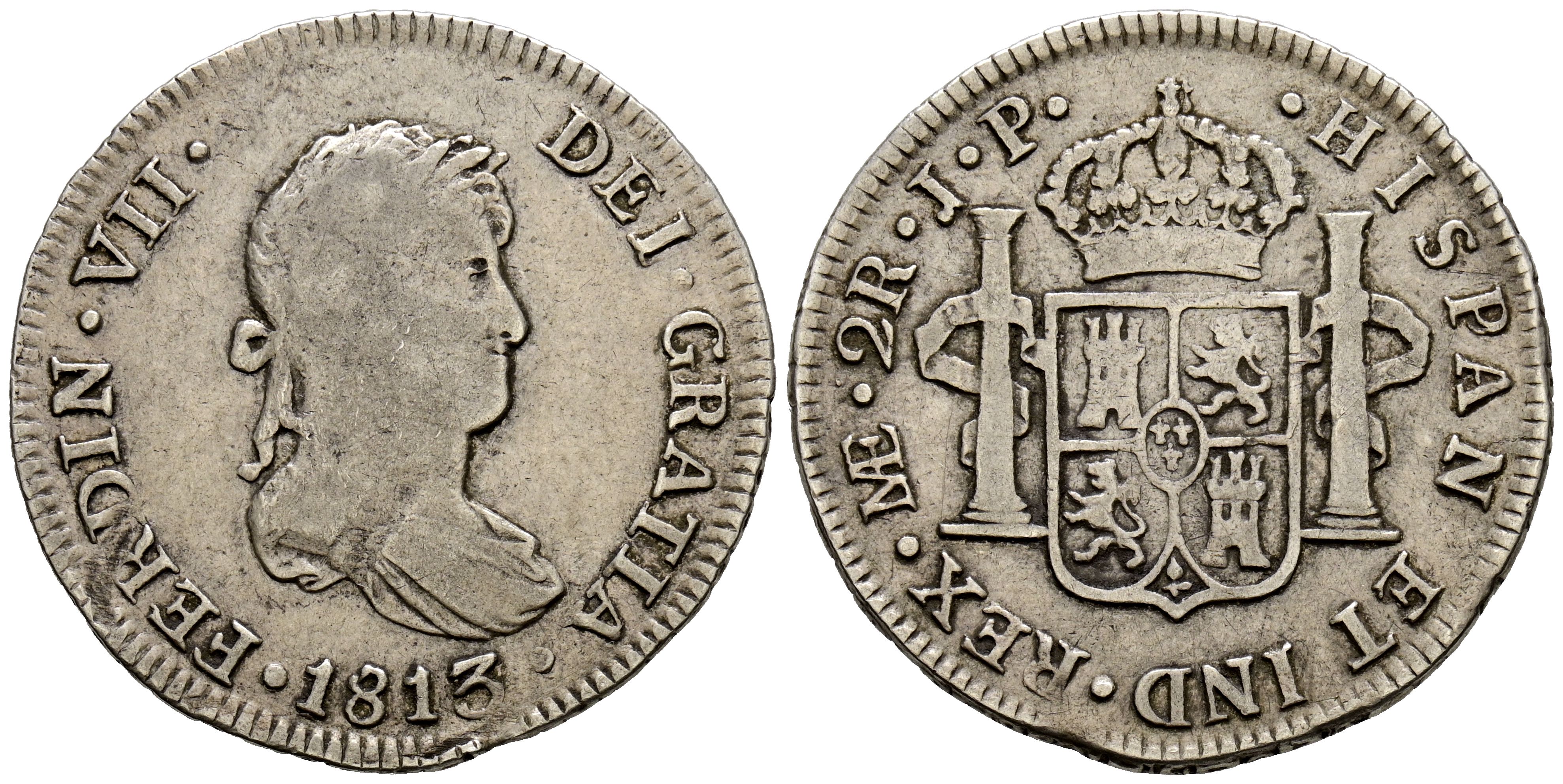 FERDINAND VII (1808-1833). 2 Reales. (Ar. 6.19g/28mm). 1813. Lima JP. (Cal-2019-813). Almost Very Fine.
