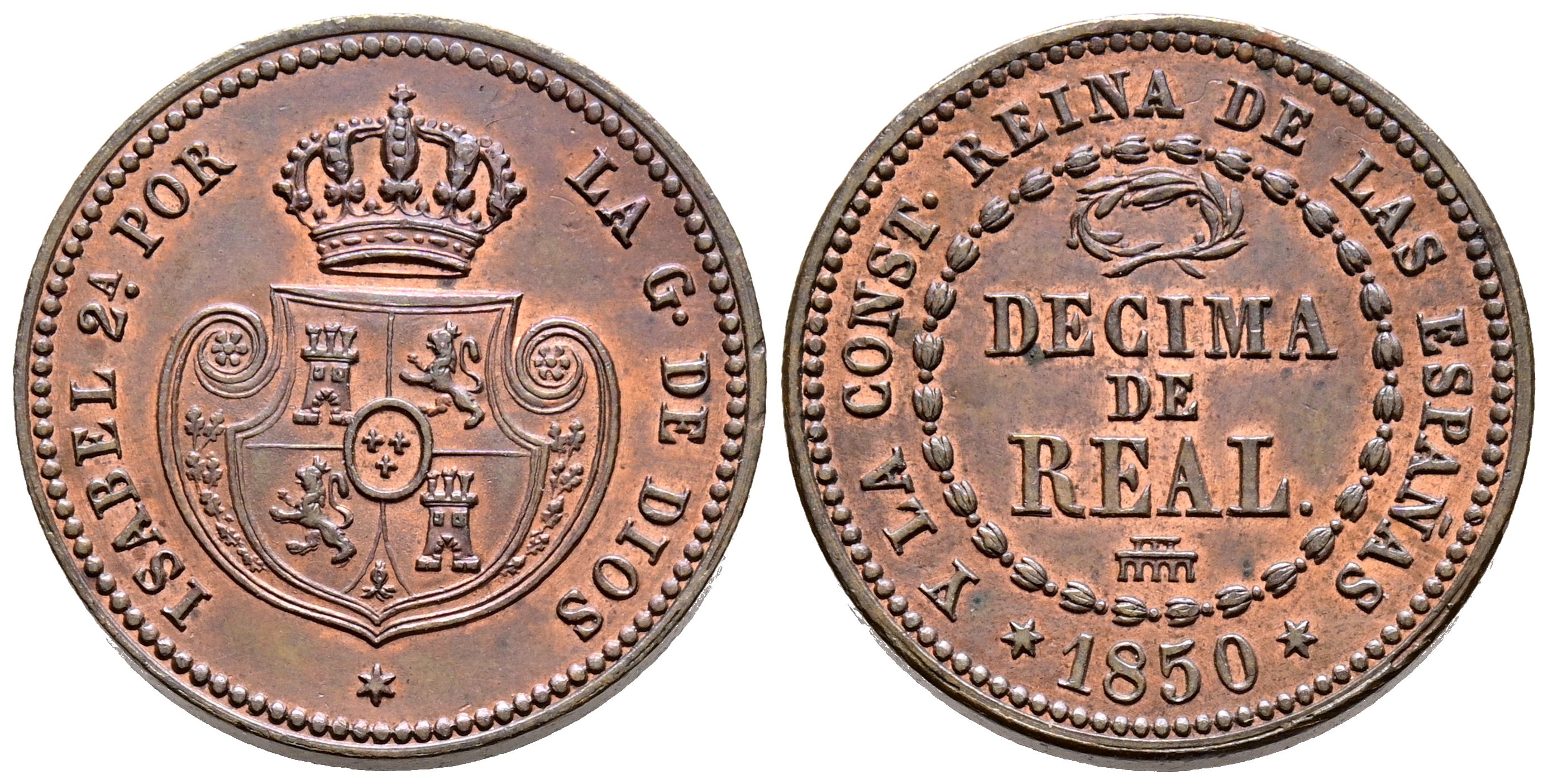 ELIZABETH II (1833-1868). Decima de Real. (Ae. 3.77g /19mm). 1850. Segovia. (Cal-2019-141). Good Extremely Fine. Beautiful specimen, nice patina.