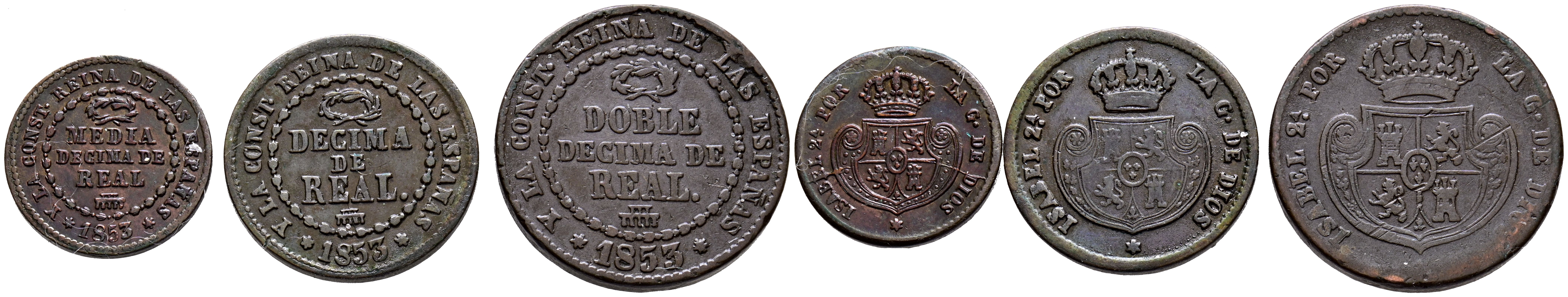 ELIZABETH II (1833-1868). Set formed by the 3 values of the Decima de Real: 1/2, Decima and Double Decima. 1853. Segovia. Different states of conservation. TO EXAMINE.
