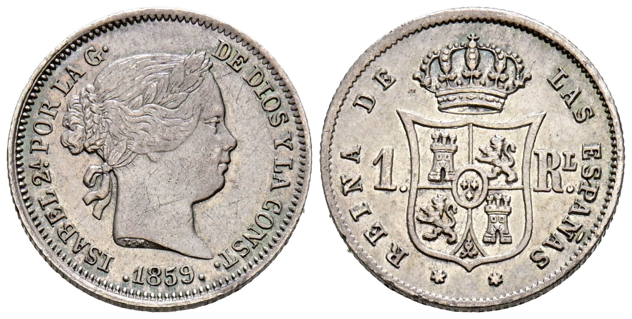 ELIZABETH II (1833-1868). 1 Real. (Ar. 1.29g/15mm). 1859. Madrid. (Cal-2019-308). Good Very Fine.