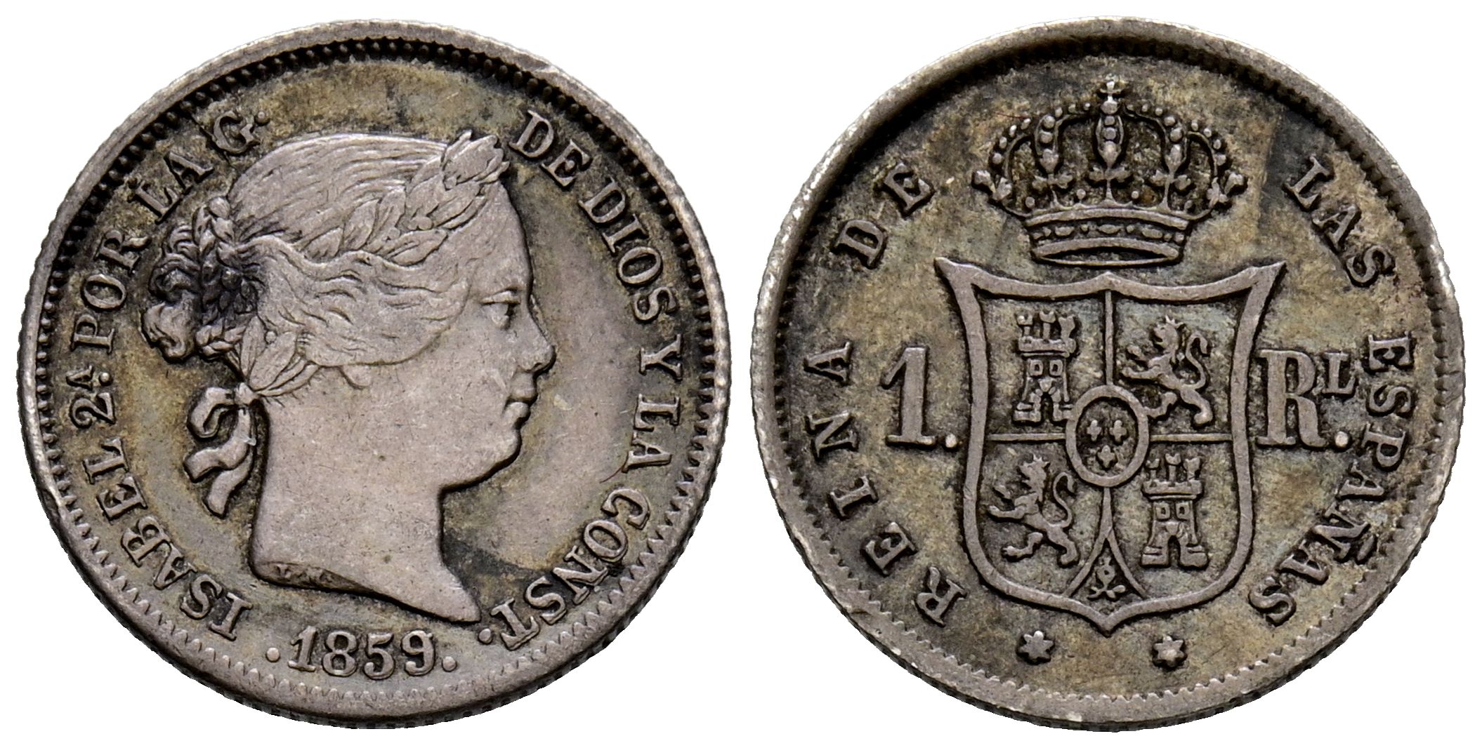 ELIZABETH II (1833-1868). 1 Real. (Ar. 1.27g/15mm). 1859. Madrid. (Cal-2019-308). Good Very Fine.