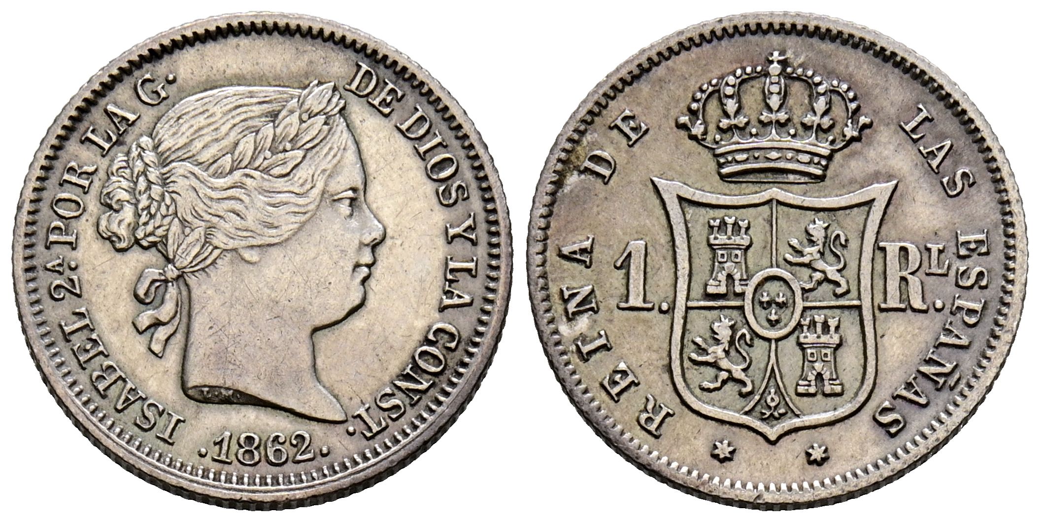 English ELIZABETH II (1833-1868). 1 Real. (Ar. 1.29g/15mm). 1862. Madrid. (Cal-2019-311). Almost Extremely Fine.