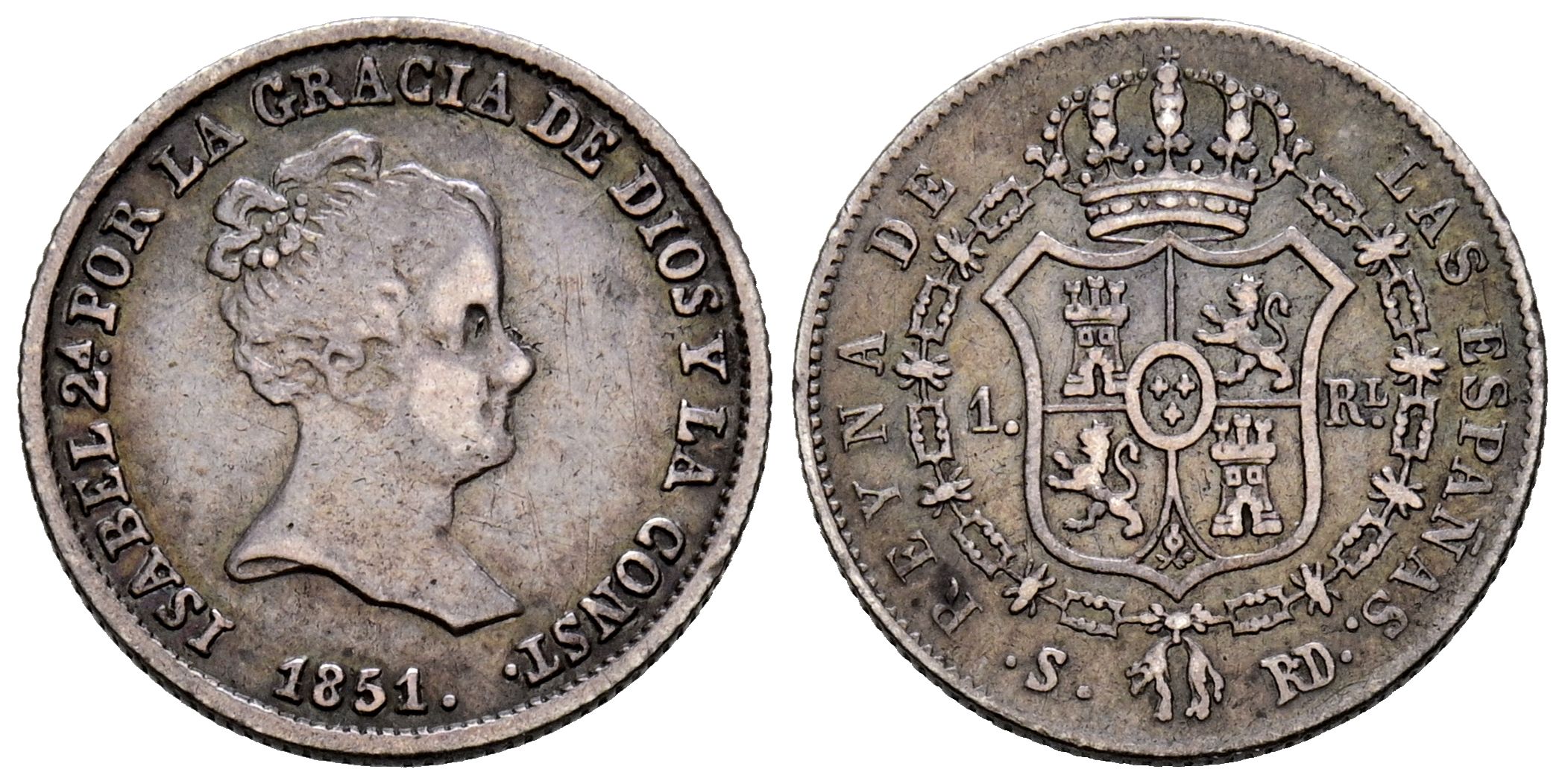 ELIZABETH II (1833-1868). 1 Real. (Ar. 1.23g/15mm). 1851. Sevilla DR. (Cal-2019-319). Very Fine/ Good Very Fine.