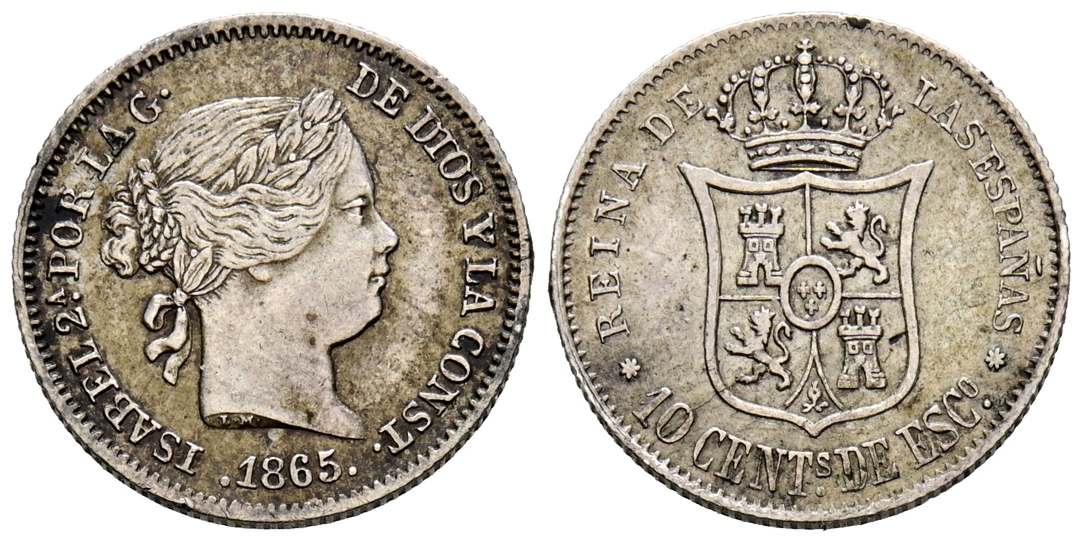 ELIZABETH II (1833-1868). 10 Céntimos de Escudo. (Ar. 1.28g/15mm). 1865. Sevilla. (Cal-2019-338). Good Very Fine.