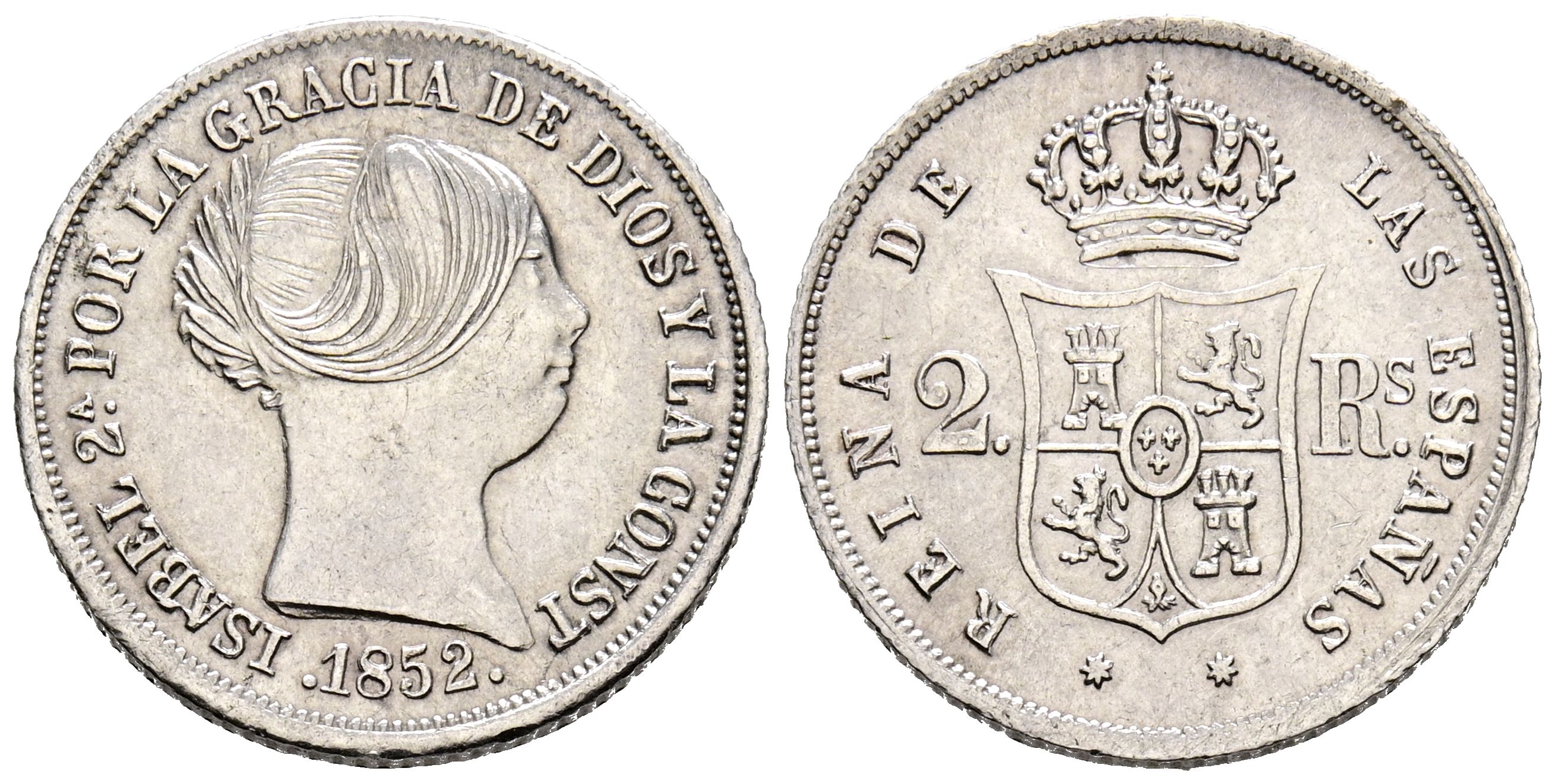 ELIZABETH II (1833-1868). 2 Reales (Ar. 2.56g /18mm). 1852. Sevilla. (Cal-2019-390). Extremely Fine.