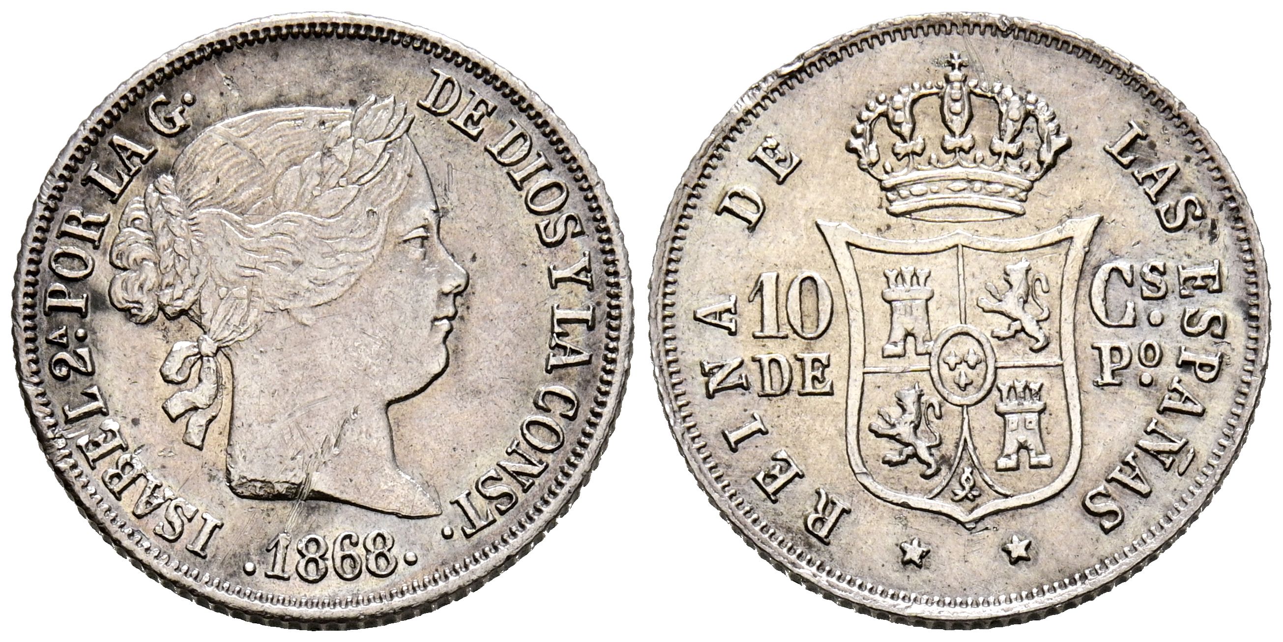 ELIZABETH II (1833-1868). 10 Cents Weight. (Ar. 2.60g/18mm). 1868. Manila. (Cal-2019-656). Very Fine.