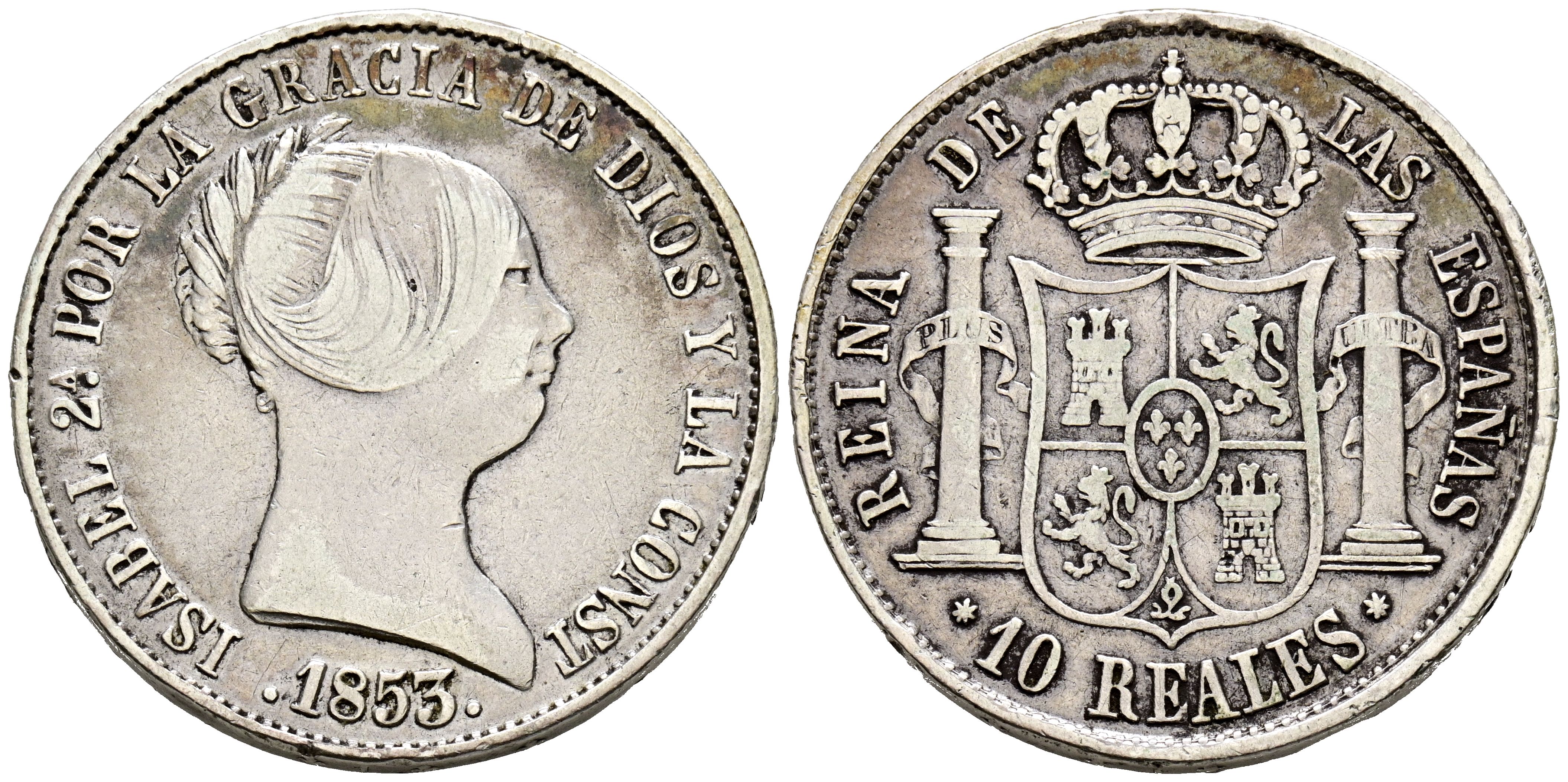 ELIZABETH II (1833-1868). 10 Reales. (Ar. 12.81g/30mm). 1853. Sevilla. (Cal-2019-549). Almost Very Fine. Limited.