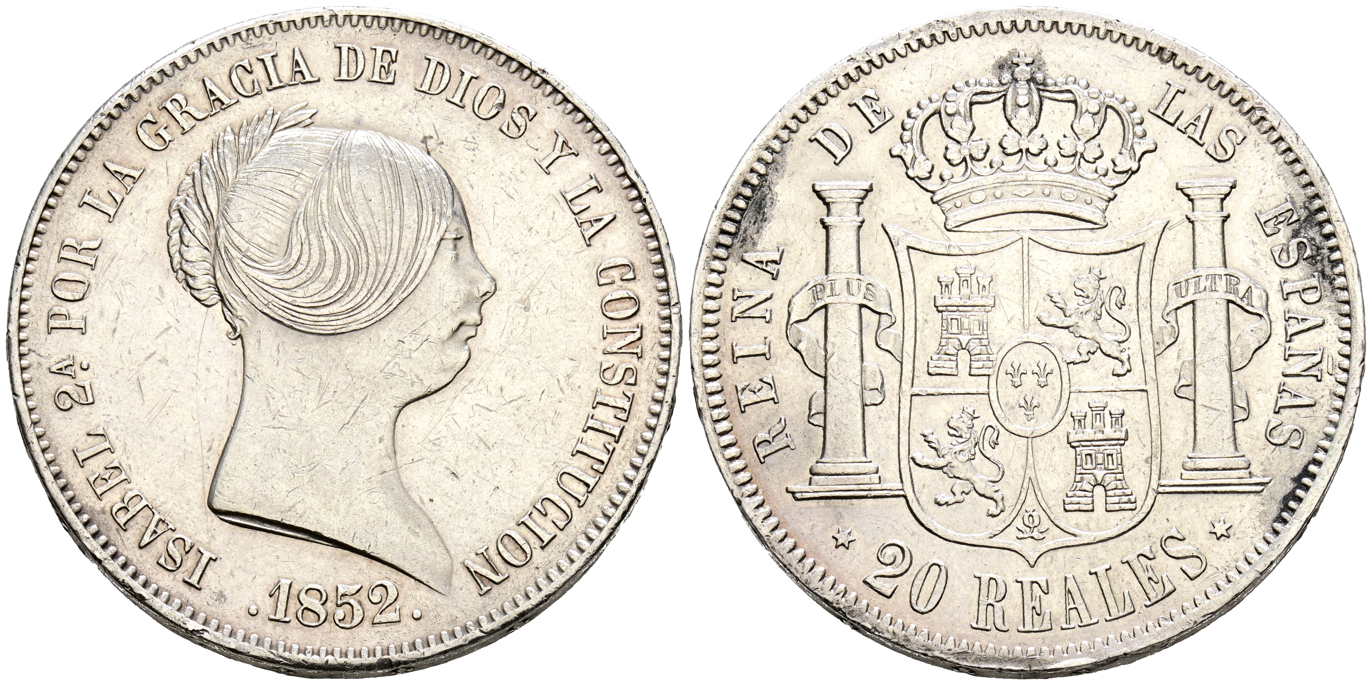 ELIZABETH II (1833-1868). 20 Reales. (Ar. 25.84g/37mm). 1852. Madrid. (Cal-2019-594). Good Very Fine.