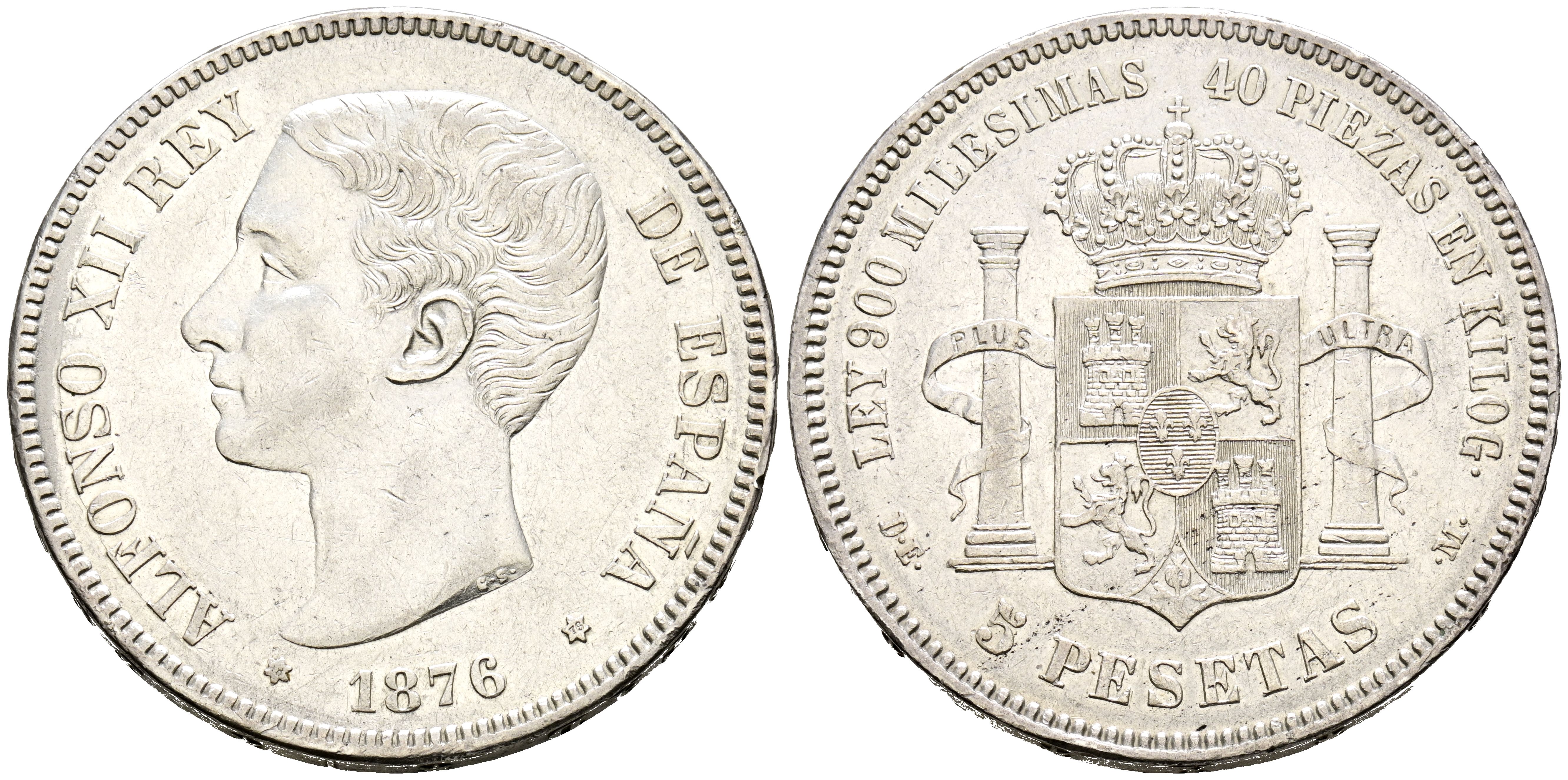 ALFONSO XII (1874-1885). 5 Pesetas. (Ar. 24.96g/37mm). 1876 *18-76. Madrid DEM. (Cal-2019-37). Good Very Fine.