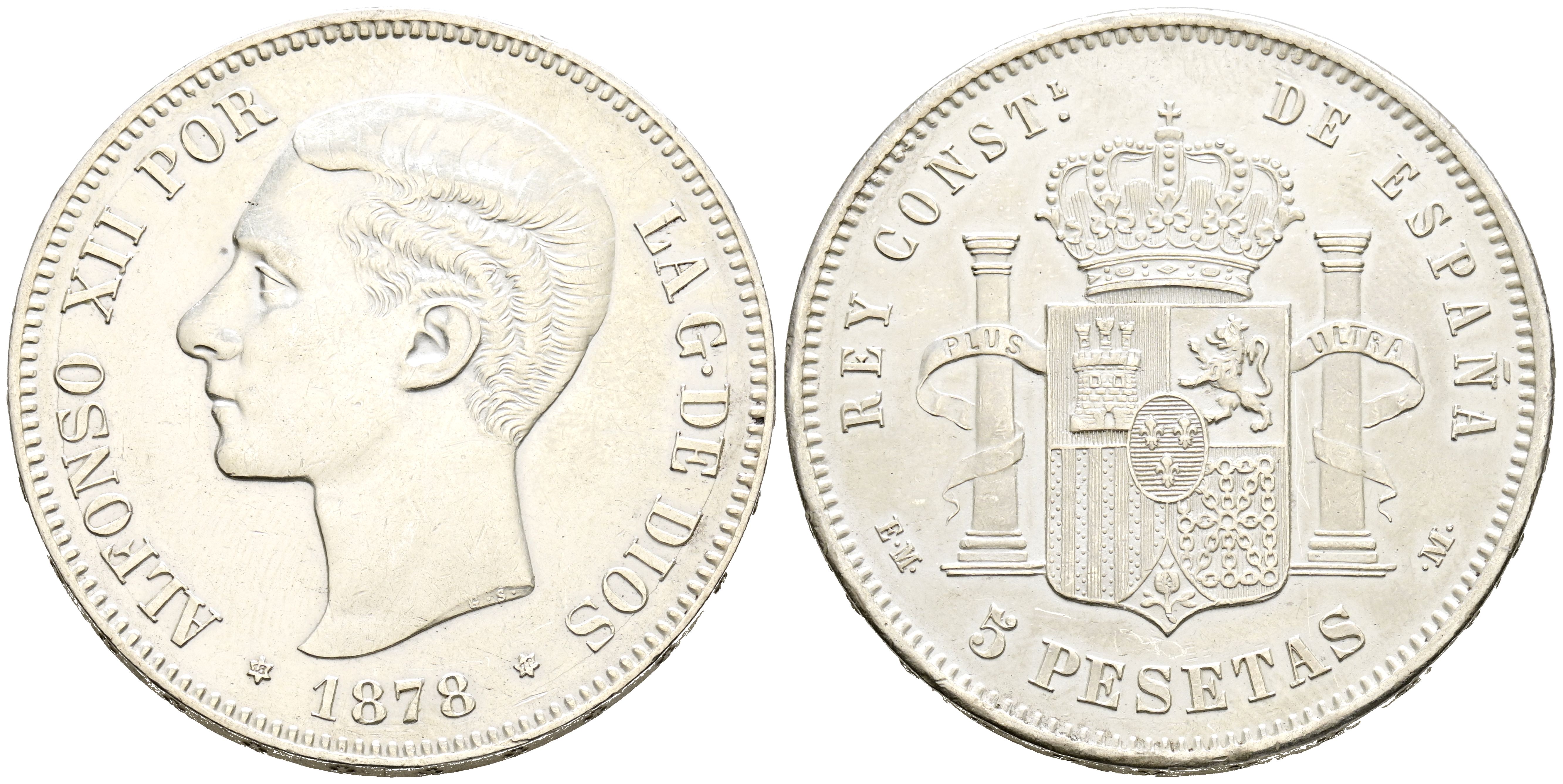 ALFONSO XII (1874-1885). 5 Pesetas. (Ar. 24.82g/37mm). 1878 *18-78. Madrid EMM. (Cal-2019-41). Good Very Fine/ Almost Extremely Fine. Cleaned.