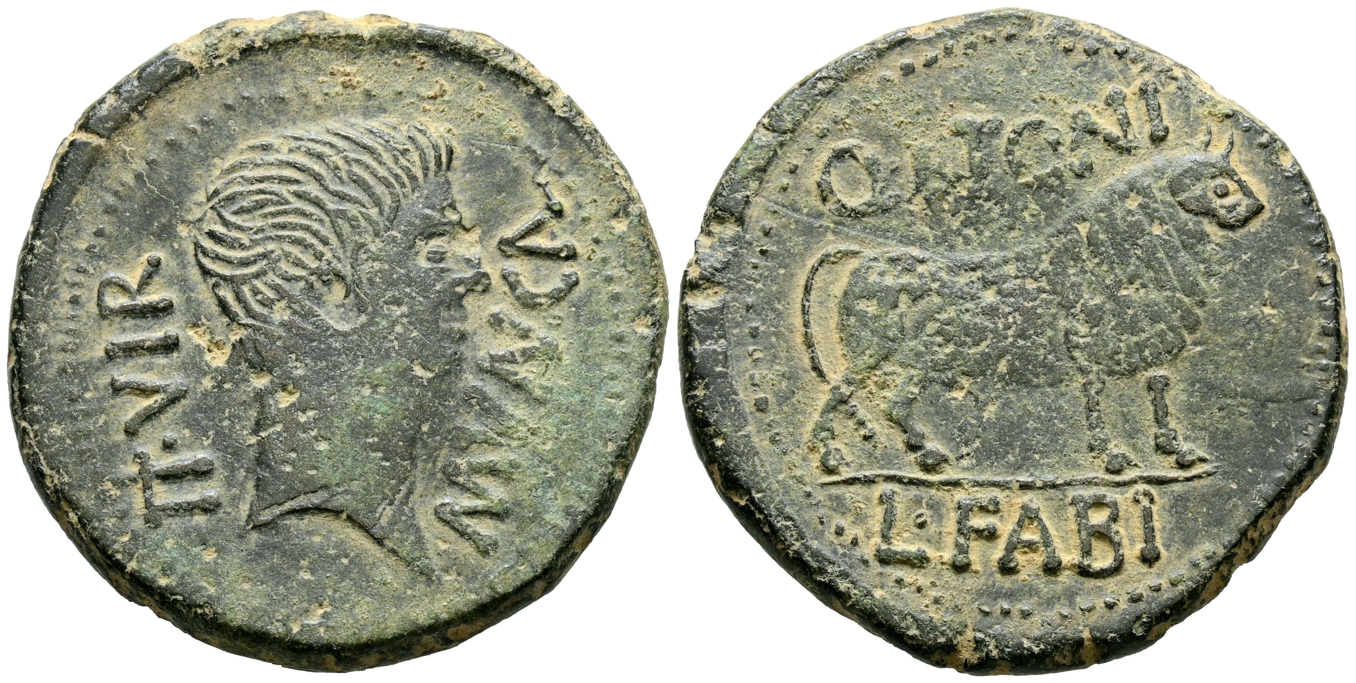 English CALAGURRIS (Calahorra, La Rioja). As. (Ae. 14.75g/31mm). 27 BC-14 AD (FAB-410). Anv: Head of Augustus to the right, around legend: II VIR MVN CAL. Rev: Bull to right on line, above legend: Q ANTONI, below line: L FABI. Almost Very Fine.