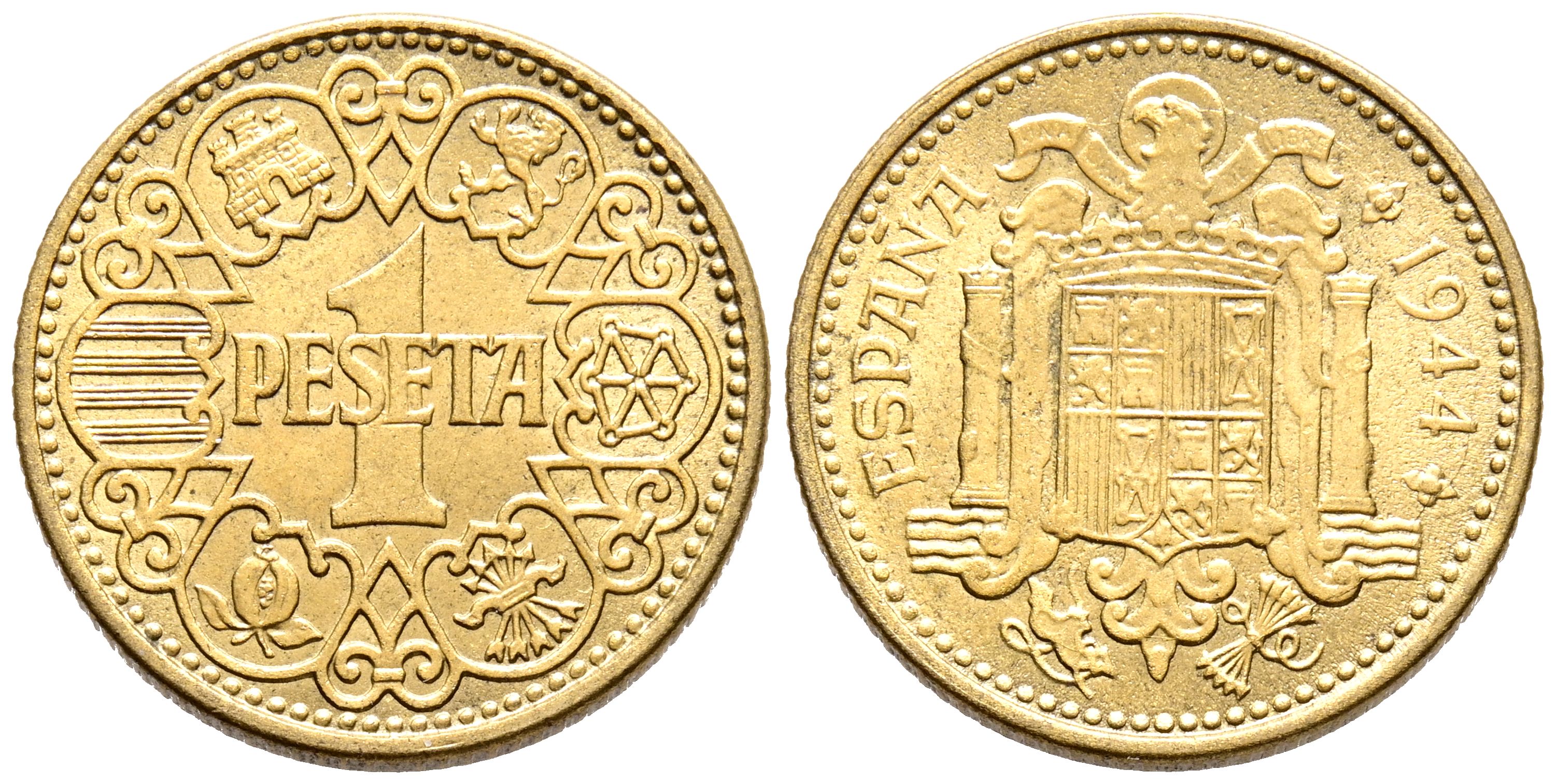 SPANISH STATE (1936-1975). 1 Peseta (Al-Cu. 3.45g/21mm). 1944. (Cal-2019-44). Almost Uncirculated.