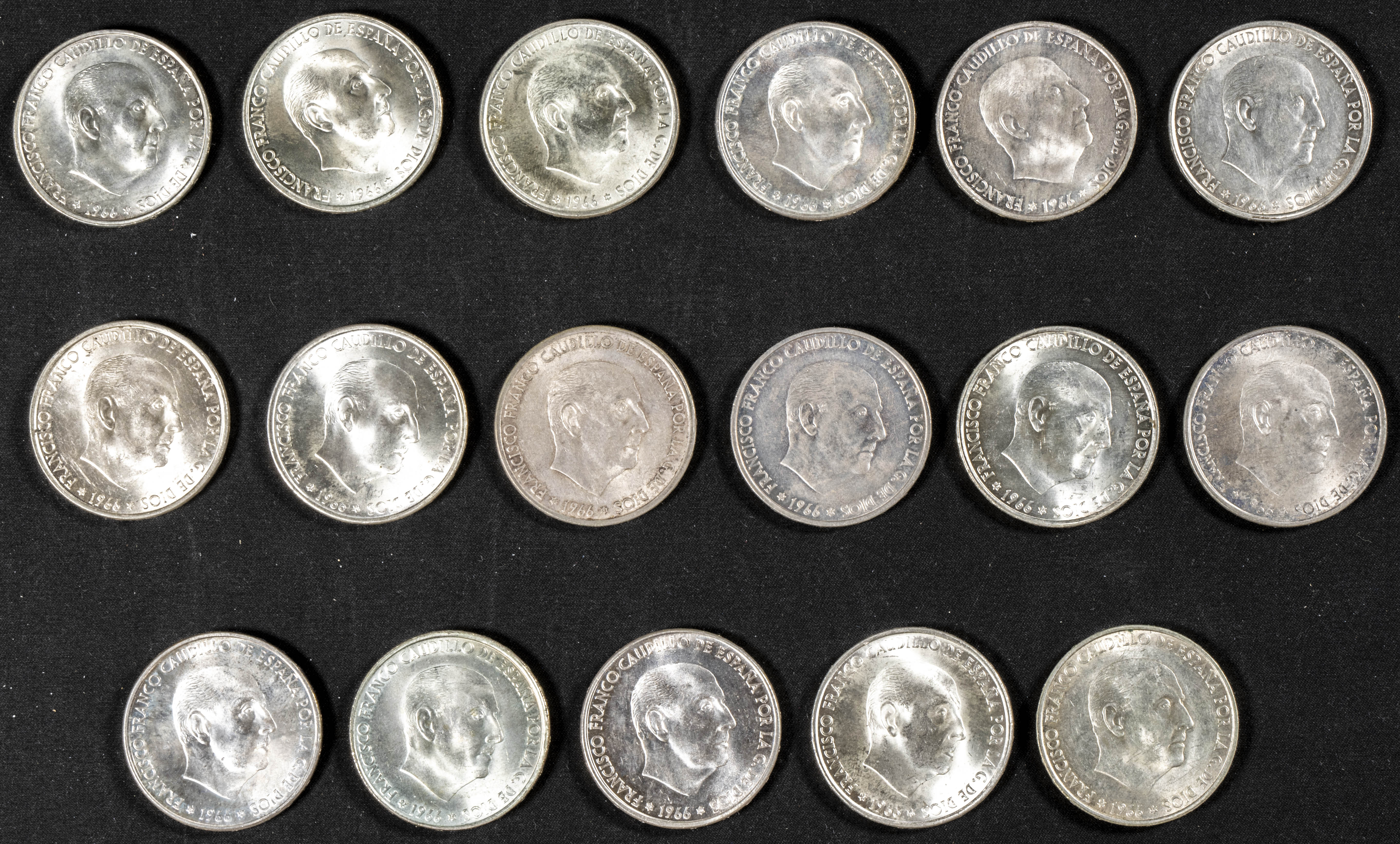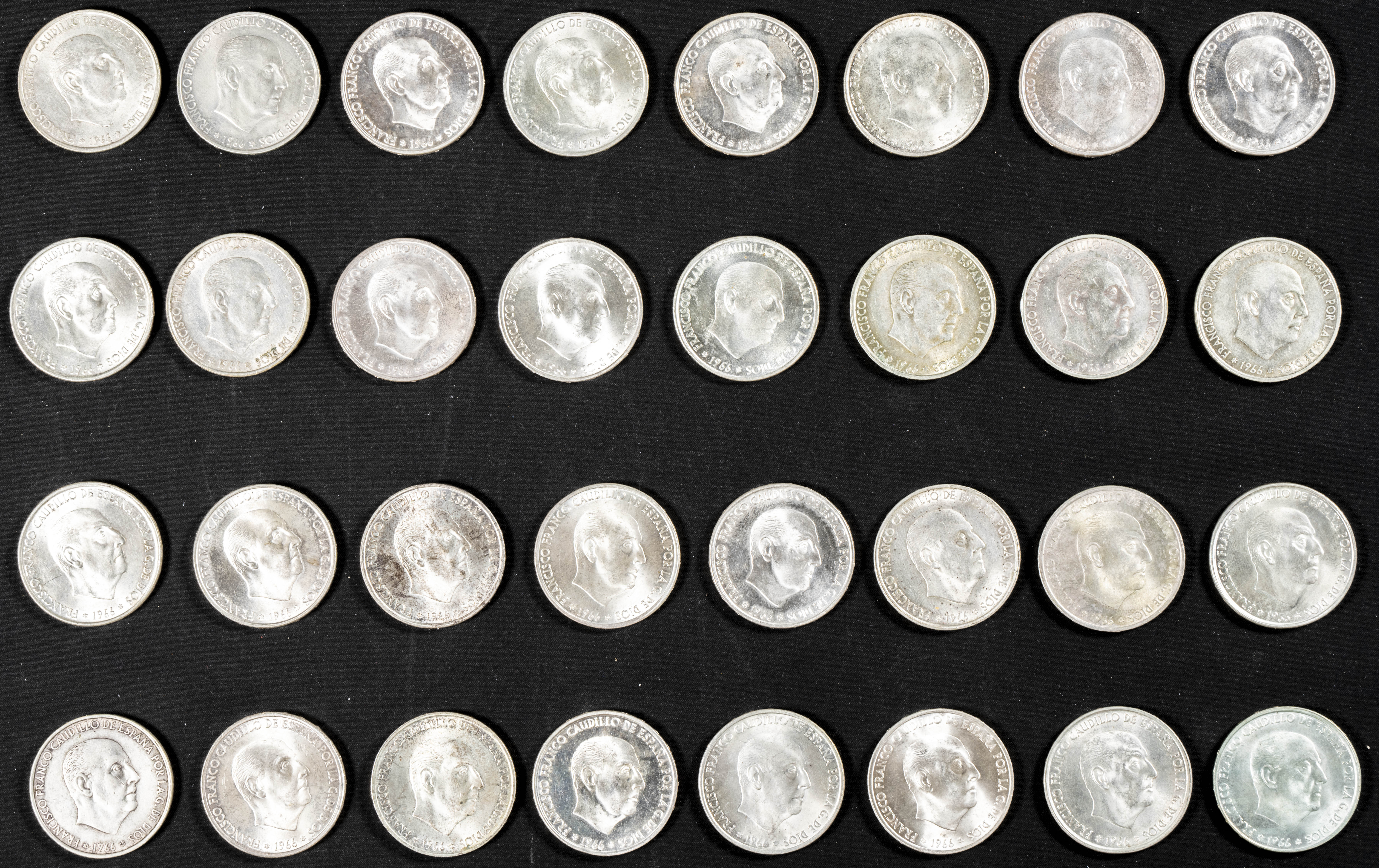 SPANISH STATE (1936-1975). Excellent set of 49 100 Peseta coins from 1966 *66 (11), *67 (13), *68 (12) and *70 (13). Good number of pieces from strips in excellent condition. Different states of conservation. TO EXAMINE.