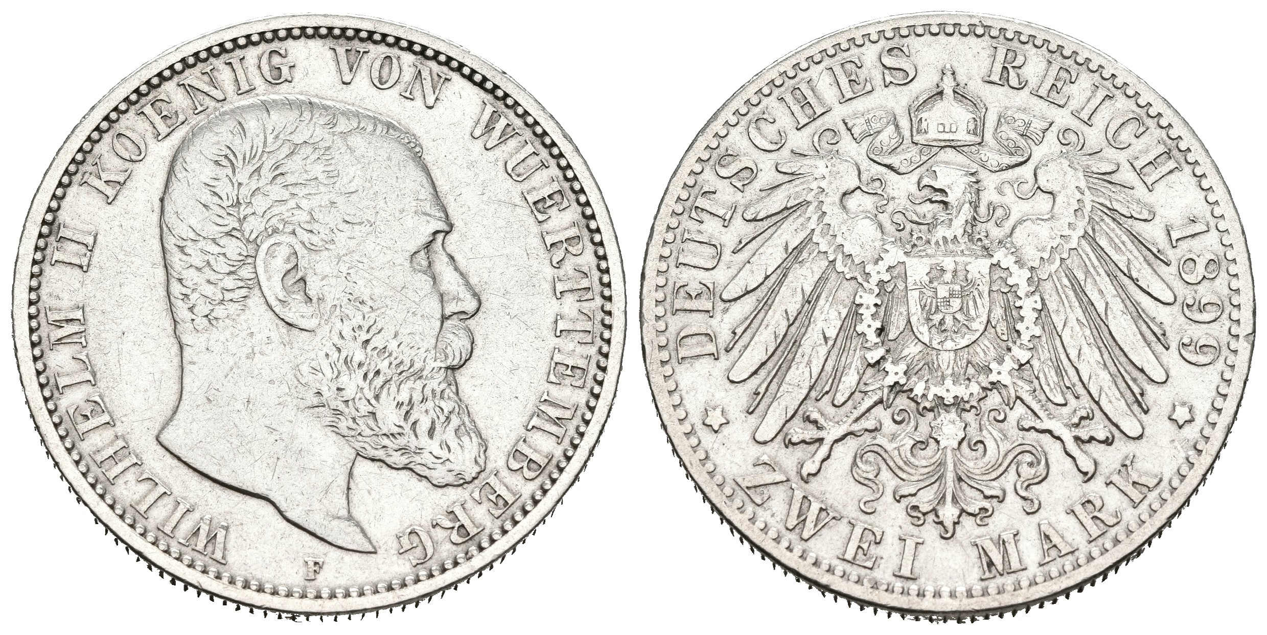 English GERMANY. 2 Mark (Ar. 11.00g/28mm). 1899. Stuttgart F. German Empire. (Km#631). Almost Very Fine.
