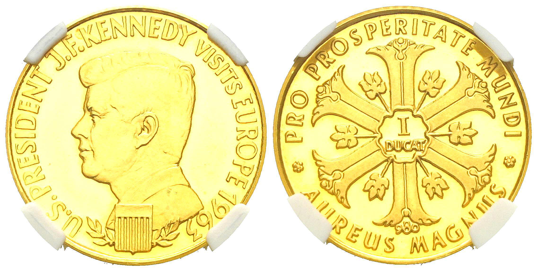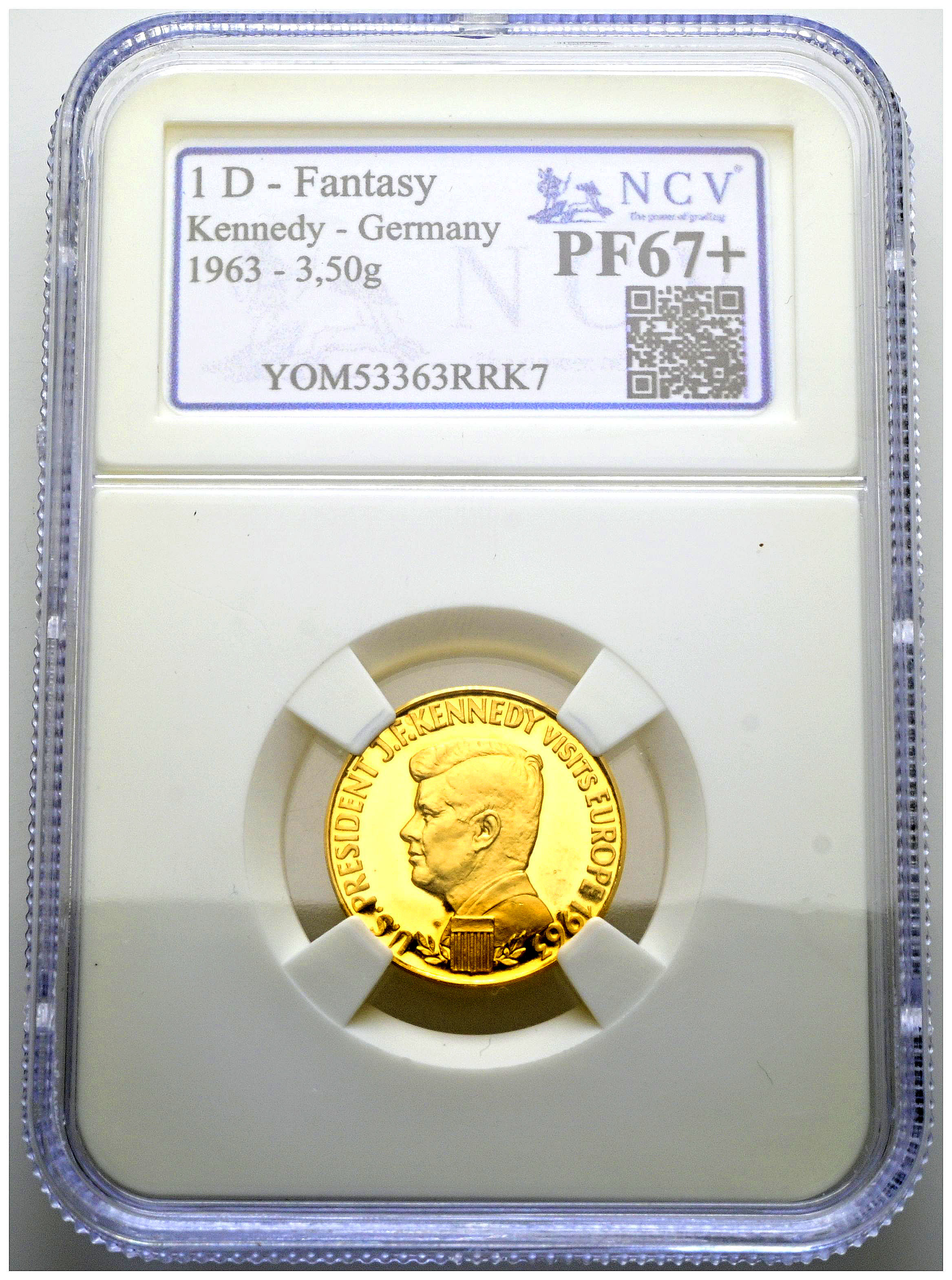 GERMANY. View of JF Kennedy (Au. 3.50g/20mm). 1963. Encapsulated by NCV. PG 67+. Limited.