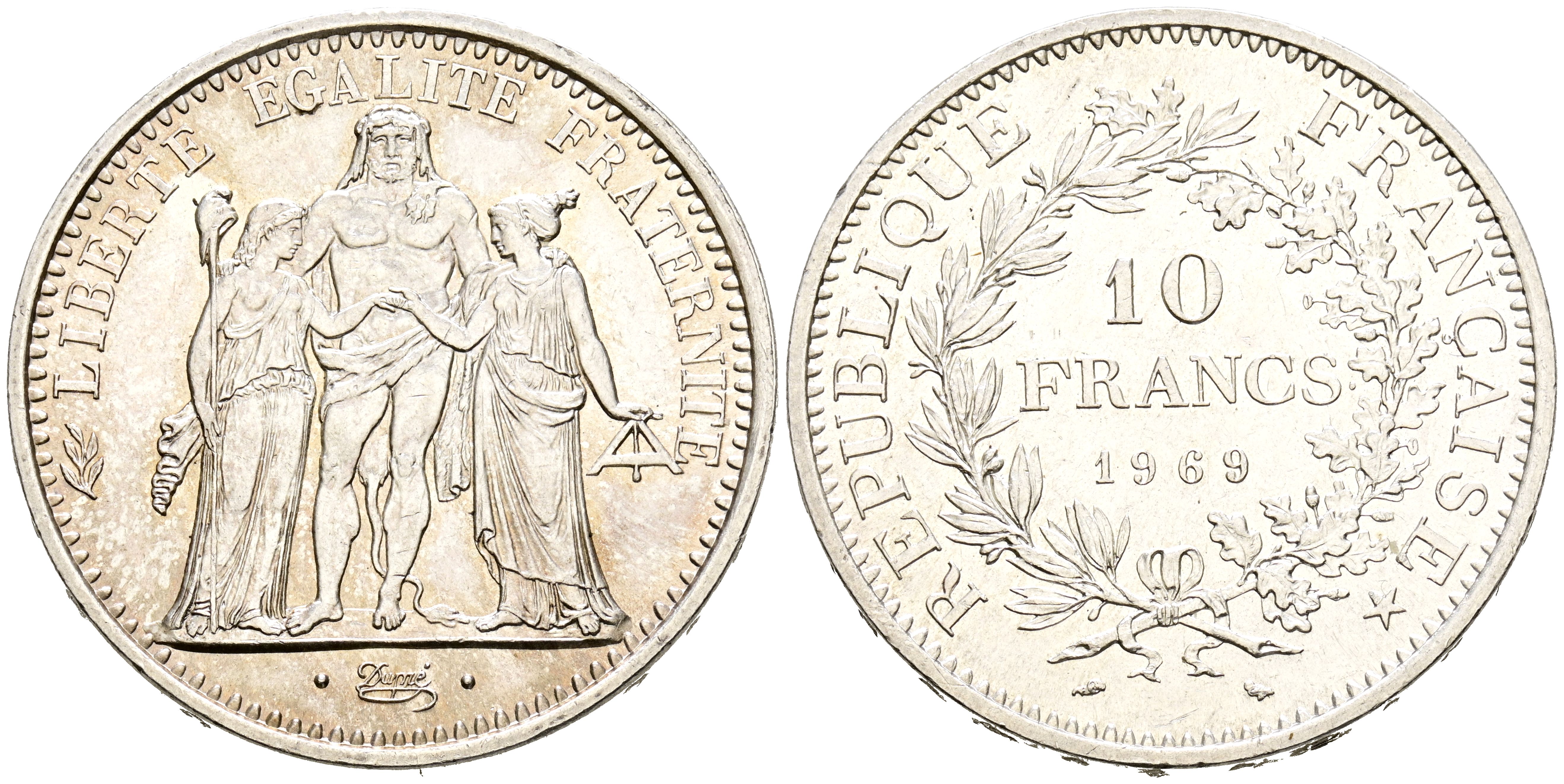English FRANCE. 10 French. (Ar. 24.97g/37mm). 1969. (Km#932). Extremely Fine.