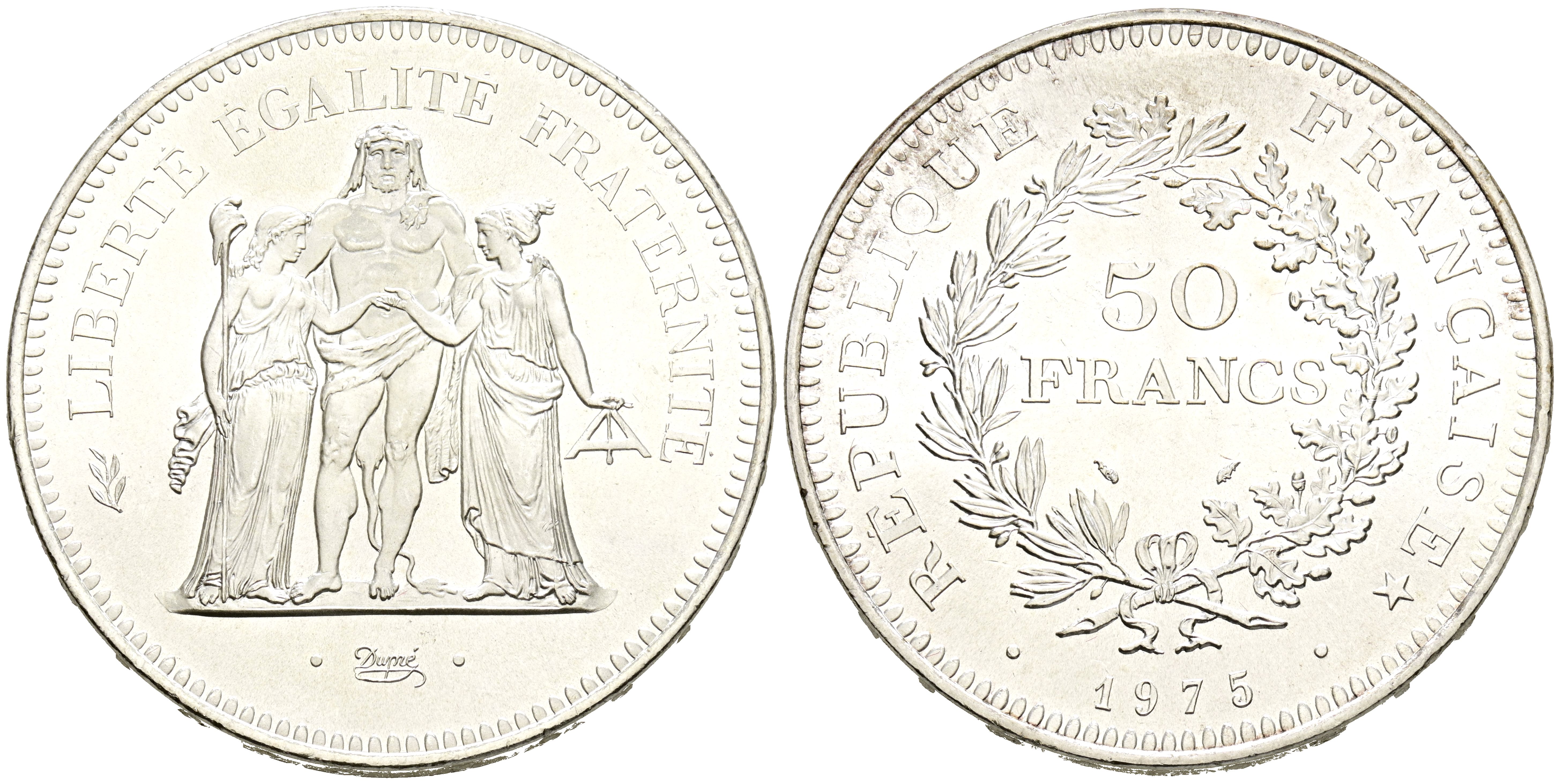 FRANCE. 50 Francs. (Ar. 29.93g/41mm). 1975. Hercules. (Km#941). Uncirculated.